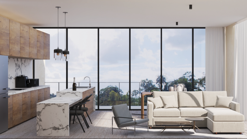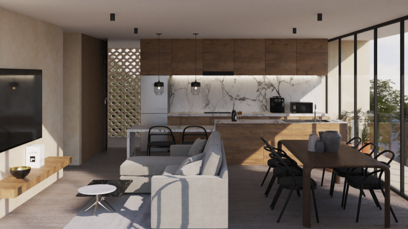 The "K’AAX Department Complex" is a residential development consisting of a total of 9 apartments distributed over four levels, located in the privileged area of Temozón Norte, an area recognized for its connectivity and proximity to essential services such as shopping centers, hospitals, and schools.