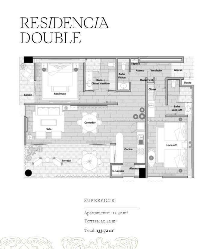 Departamento de 2 recámaras de 133.72m2 (departamento de 112.42 m2+ 20.42 m2 de terraza)