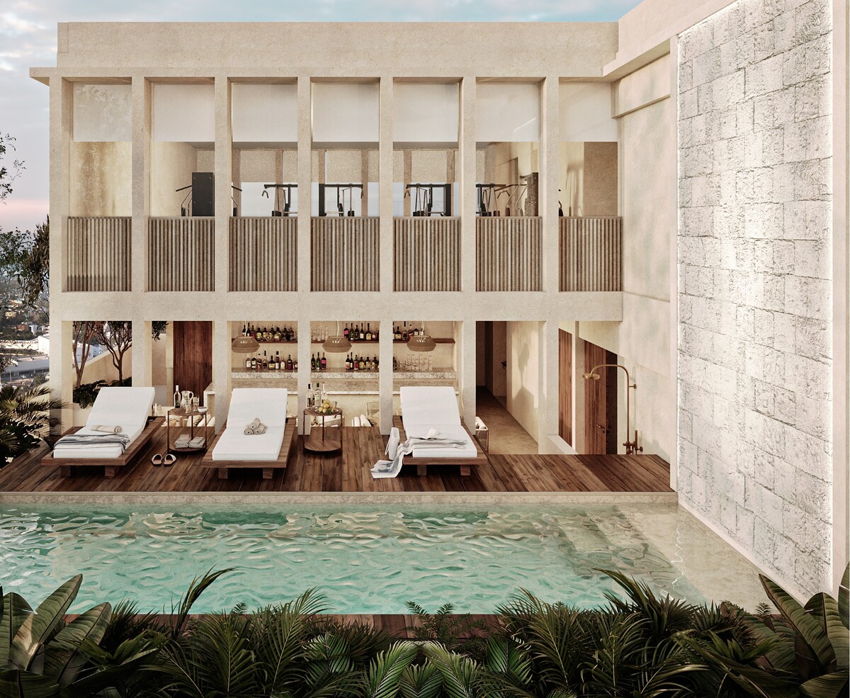 La torre cuenta con 8 niveles, integrando 44 departamentos de una recámara y 8 penthouses dúplex de dos recámaras con sistema lock-off, ideales tanto para vivir como para invertir.