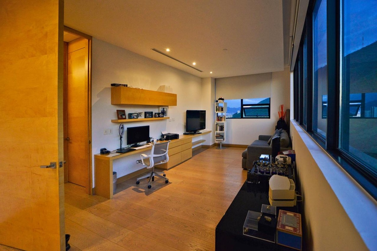 Incluye: Equipo de sonido ambiente Harman Kardon en área social y terraza, clima central seccionado, muebles empotrados, cocina equipada, 4 cajones y 1 bodega.