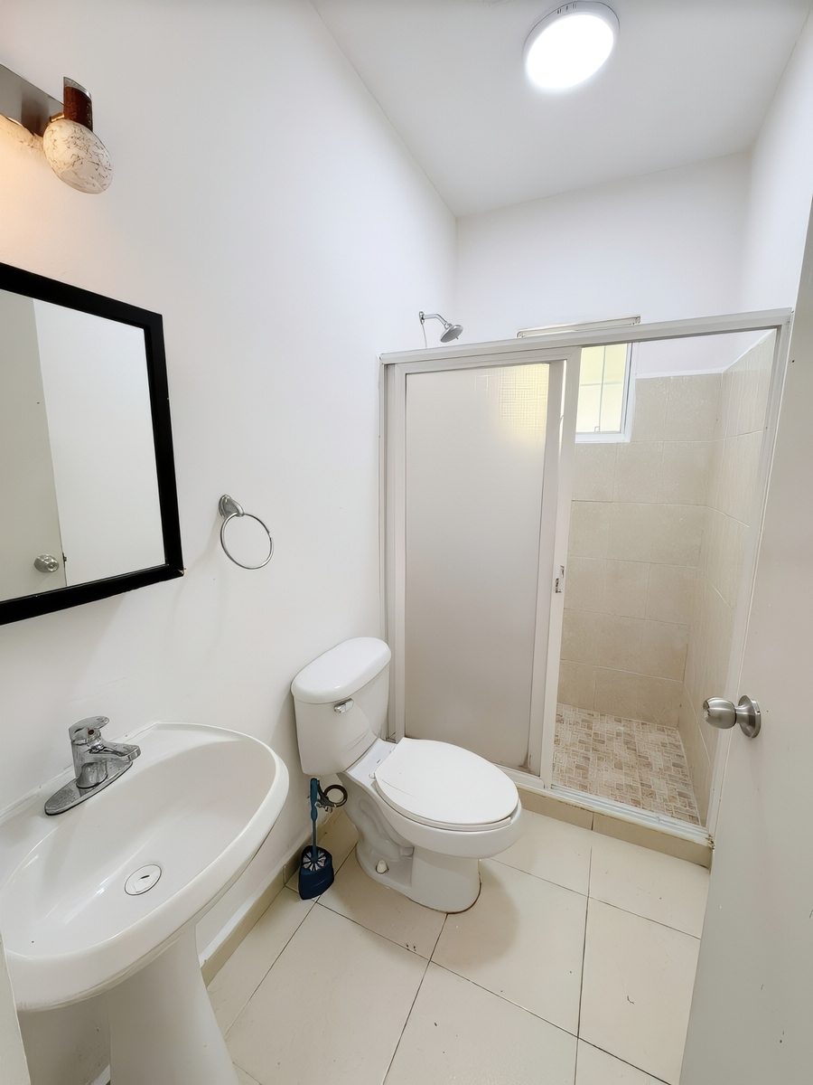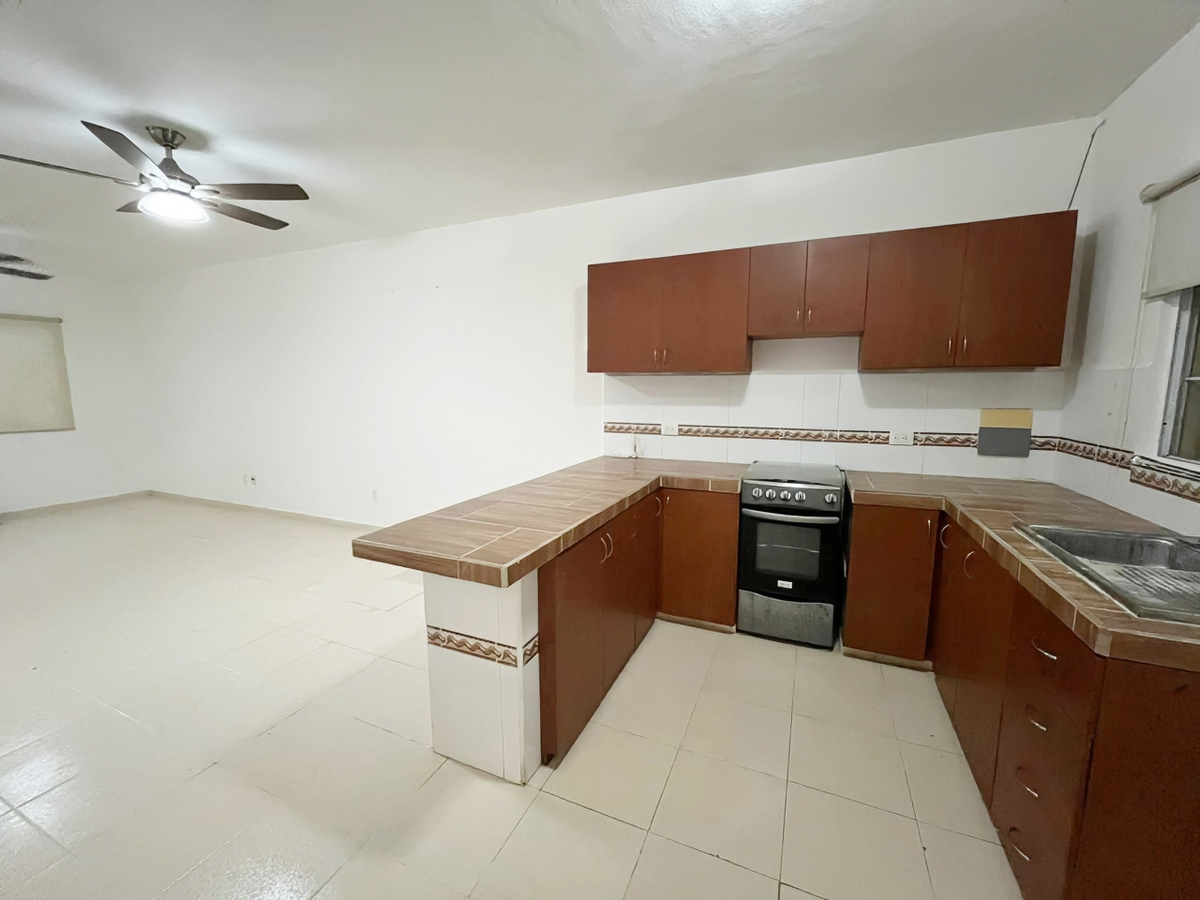 Disfruta de un espacio amplio y luminoso, con 2 ventiladores en la sala y cocina abierta con área de lavado. Las 2 habitaciones cuentan con aire acondicionado y closets abiertos, mientras que las Recamaras tienen una excelente entrada de luz natural.