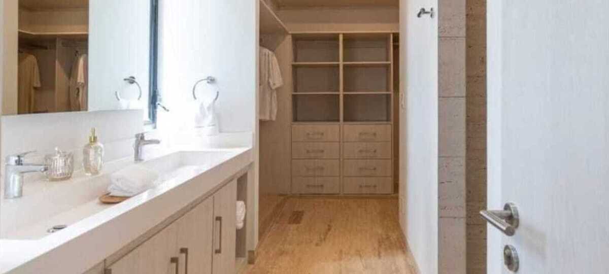 1 recámara principal con balcón, clóset vestidor y baño con doble lavabo.