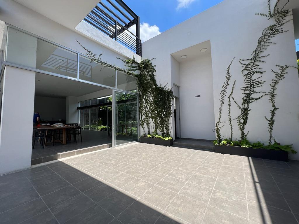Casa club con alberca, terrazas, cancha de usos múltiples, áreas verdes y juegos para niños.