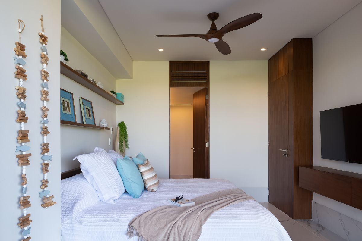 Common areas operate on solar energy, have charging points for electric cars, and water reuse systems. Its bioclimatic design and integration with nature make it a benchmark for efficiency and well-being in Puerto Cancún.