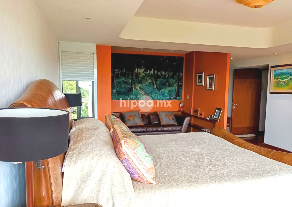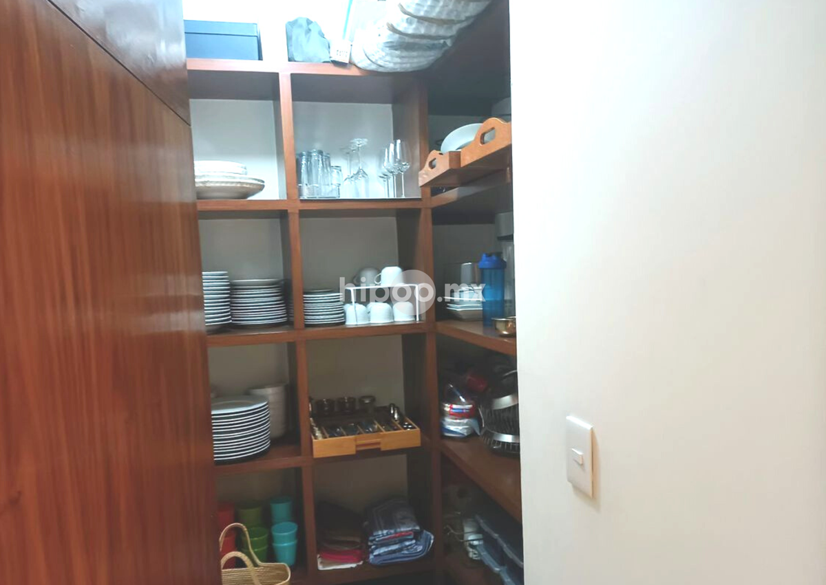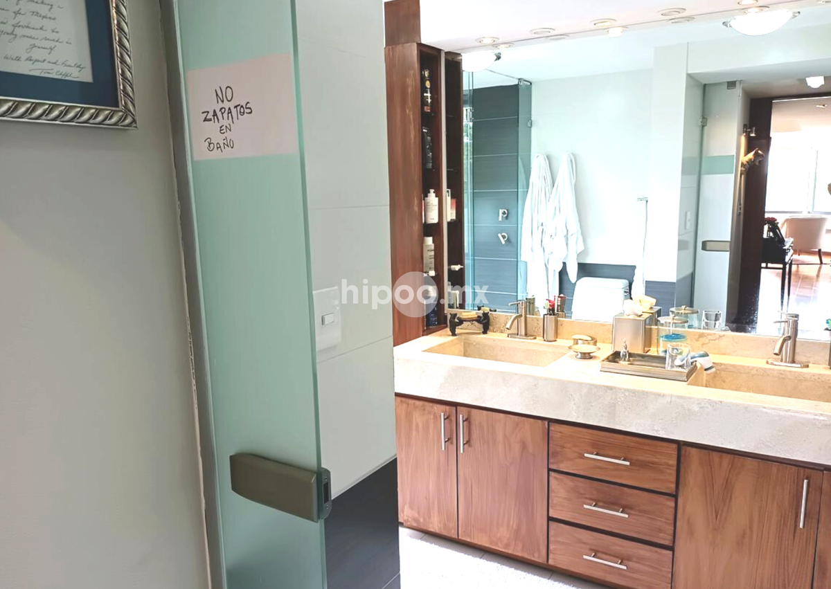 Cuenta con tres recámaras cada una con baño y vestidor, Family Room, estudio, sala - comedor con terraza, medio baño, cocina integral, cuarto de servicio y de lavado, bodega, tres cajones de estacionamiento y estricta seguridad las 24 horas.