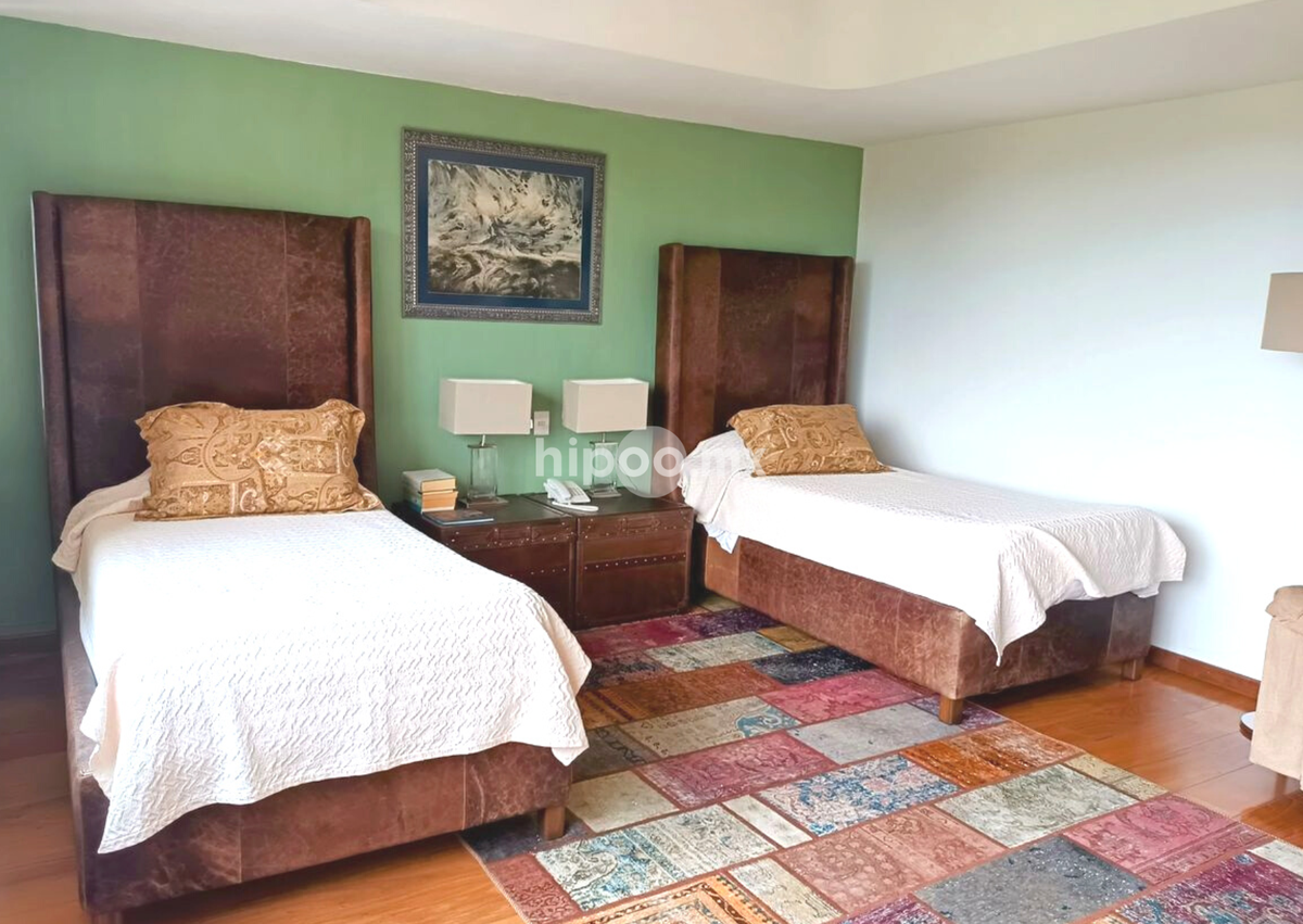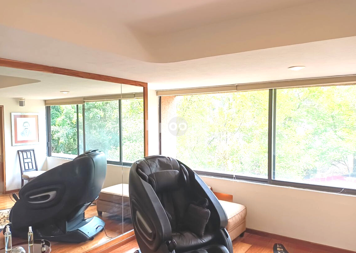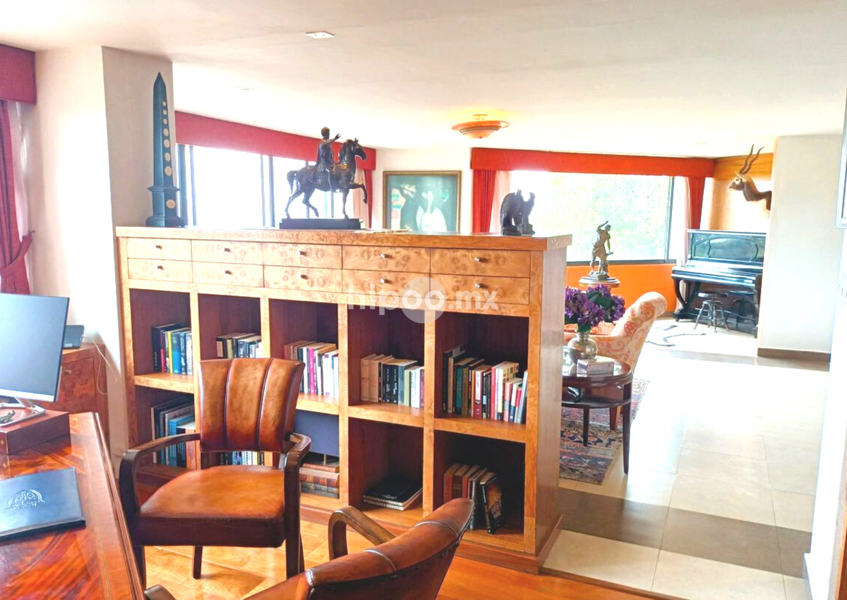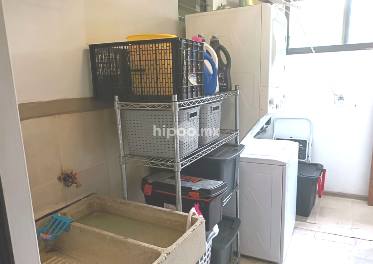 Cuenta con tres recámaras cada una con baño y vestidor, Family Room, estudio, sala - comedor con terraza, medio baño, cocina integral, cuarto de servicio y de lavado, bodega, tres cajones de estacionamiento y estricta seguridad las 24 horas.