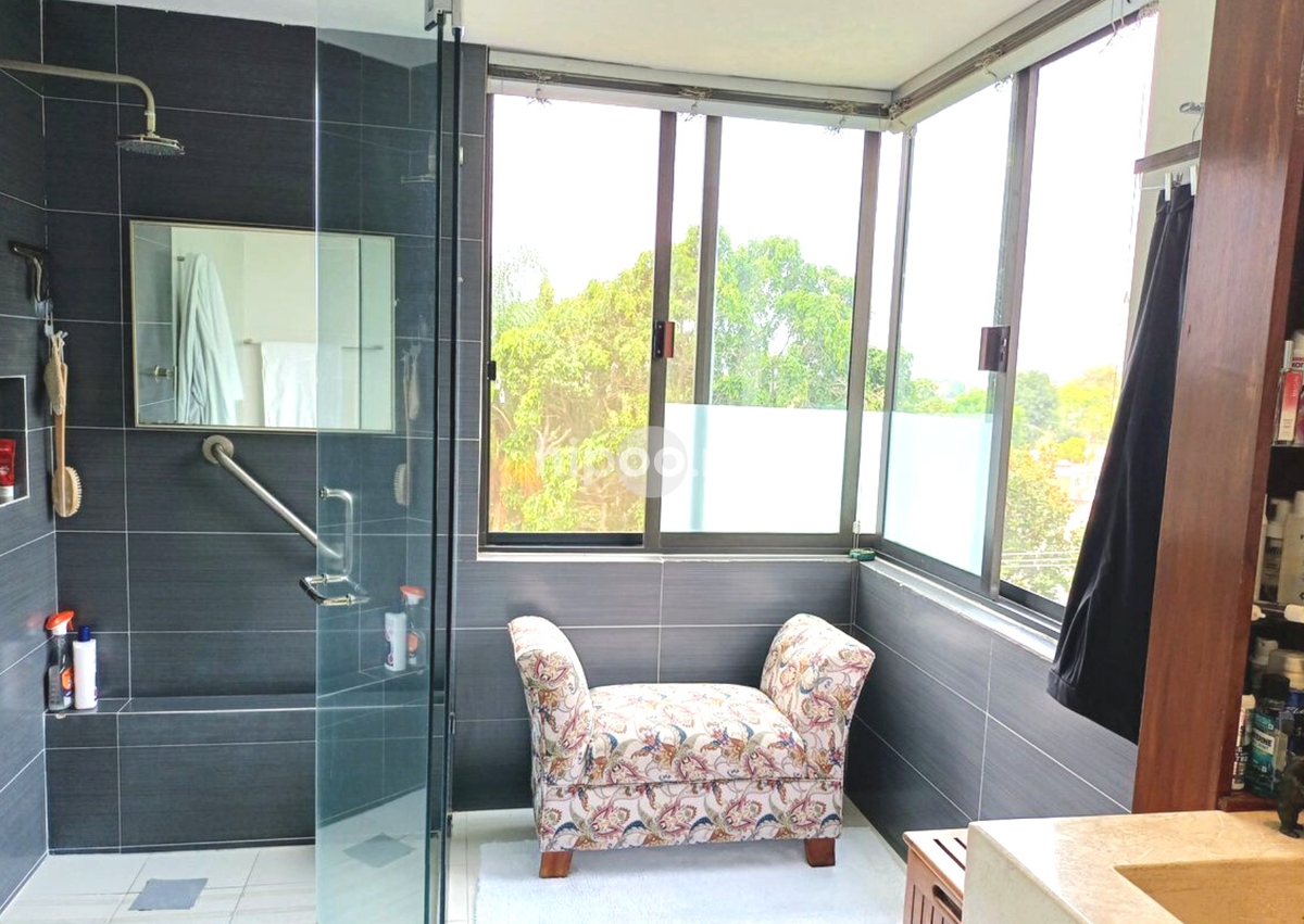 It has three bedrooms, each with a bathroom and dressing room, Family Room, study, living-dining room with terrace, half bathroom, integral kitchen, service and laundry room, storage room, three parking spaces, and strict security 24 hours a day.