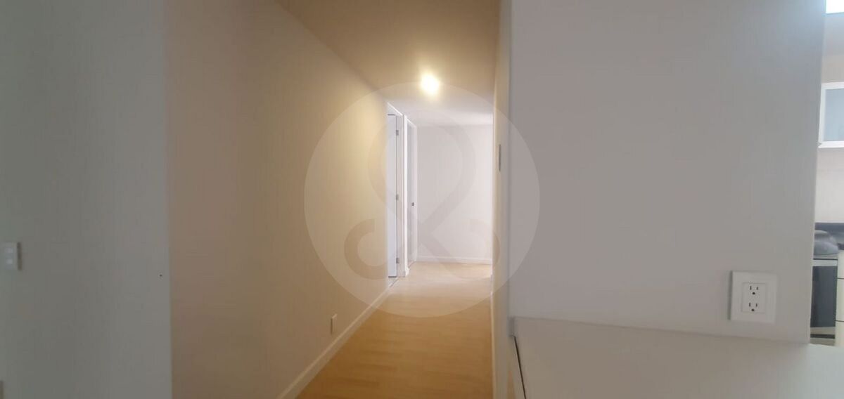 Cocina Integral con barra - desayunador. Alacenas internas y externas ocultas. Bodegas y espacios de guardado ocultos a lo largo de sala comedor del departamento.