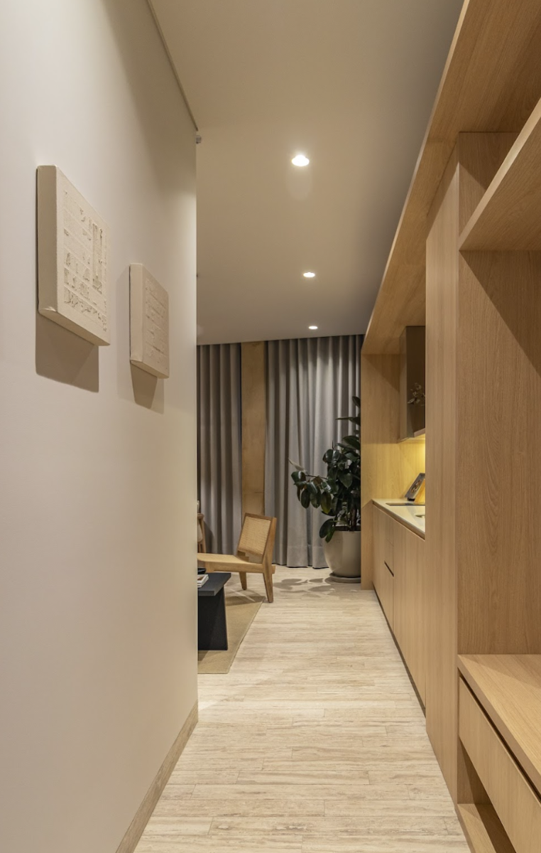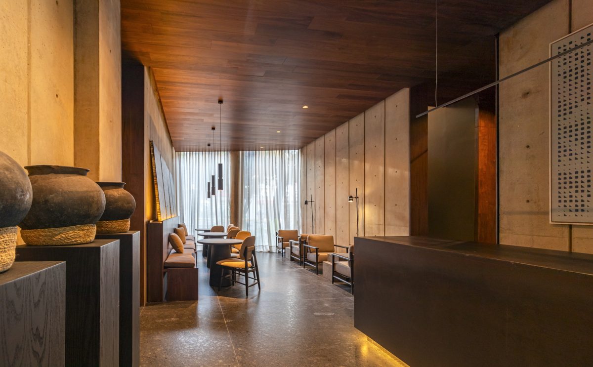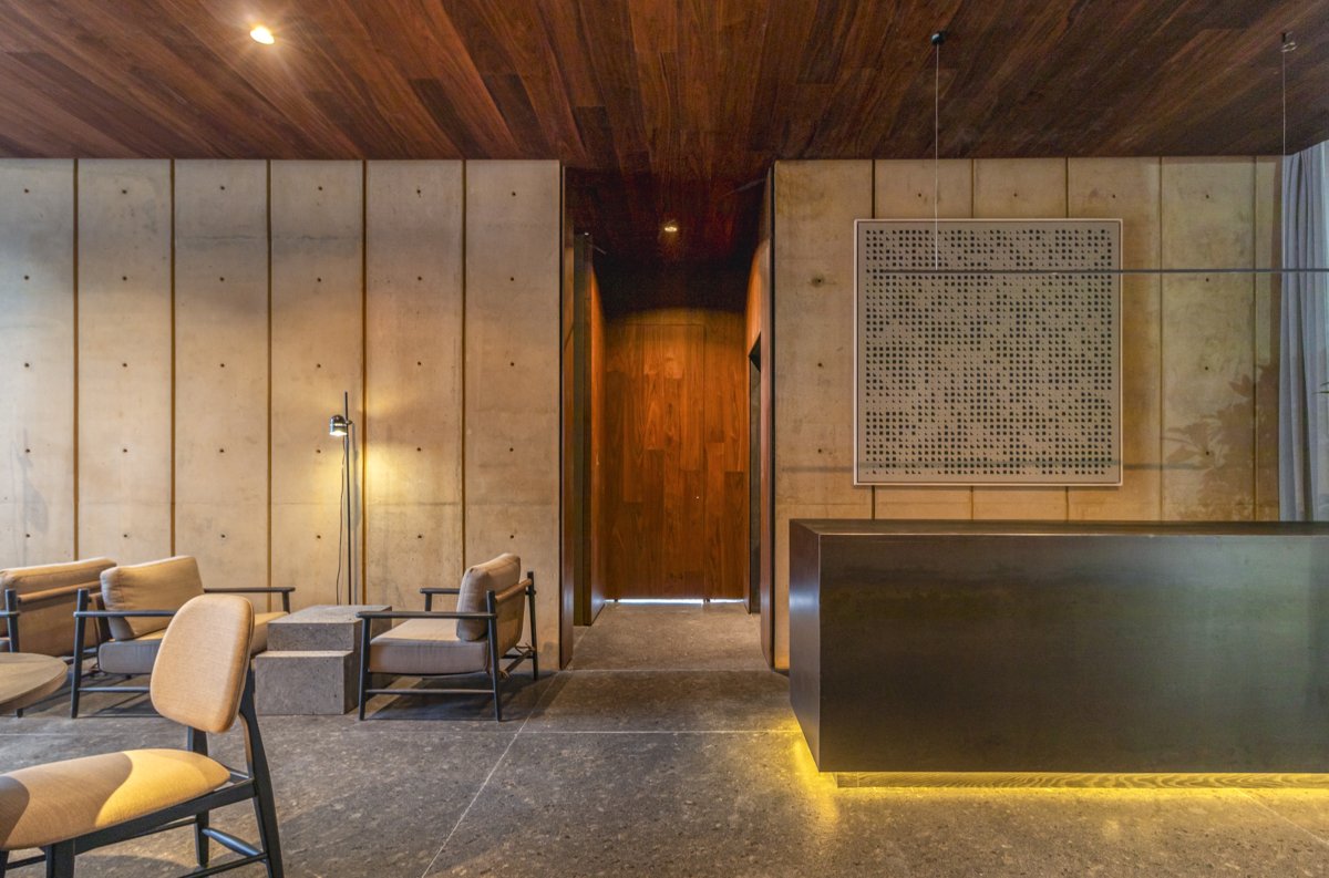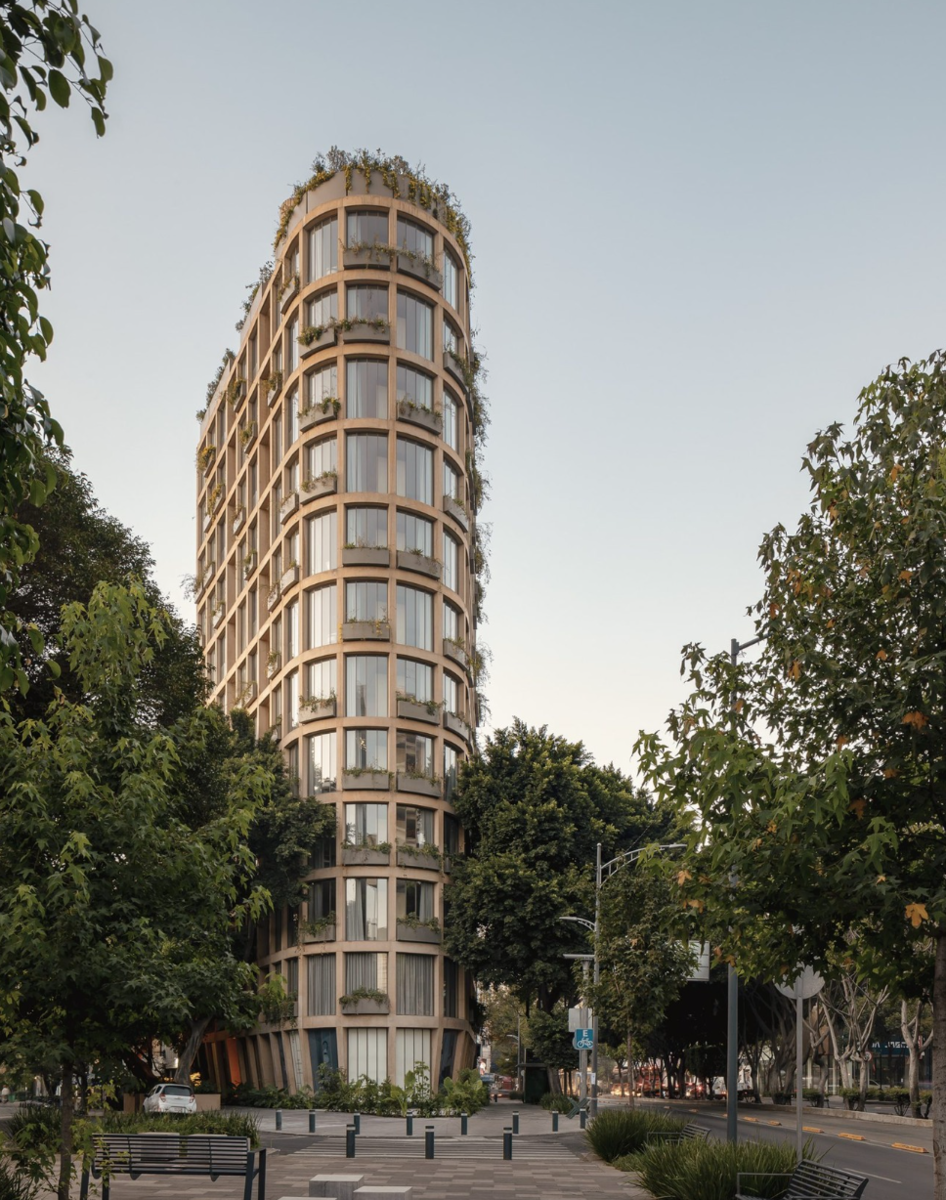 The project stands out for its contemporary architectural design and unique triangular shape, resulting from its location at the intersection of Insurgentes and Tonalá. Its exposed concrete facade, in warm tones, combines straight and curved lines that give it a sophisticated and timeless character.
