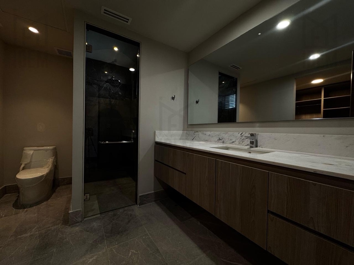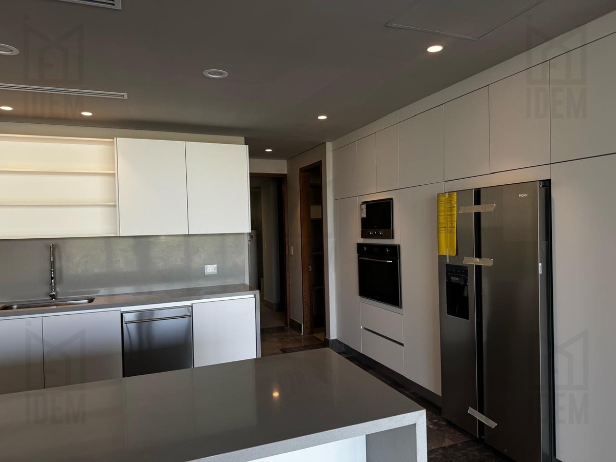 Al entrar encontramos una amplia sala de estar con vista directa al gran lago, comedor que nos conecta con una cocina muy bien equipada con un refrigerador Haier "side by side", horno eléctrico Teka, diseño de alta gama, Microondas Teka, Parrilla de vitrocéramica Teka con tecnología avanzada para un rendimiento excelente, campana purificadora Teka en acabados de lujo, aquí mismo podemos encontrar un medio baño para visitas y a mano derecha encontramos la recámara principal que cuenta con un espacioso walking clóset, baño completo y unas hermosas vistas al lago con un imponente paisaje rodeado de montañas. Hacia la izquierda tenemos las dos recámaras secundarias, que igualmente cuentan cada una con baño completo, walking closet y cuenta con vistas increíbles. Todos los espacios cuentan con aire acondicionado frio/calor, marca Hisense Fan and Coil tipo VRF, sistema de piso radiante hidrónico en área de recámaras y sala de estar, Boiler eléctrico estacionario, maraca Calorex, modelo Vatium. Este departamento también cuenta con una gran terraza que nos brinda cercanía a la bellísima naturaleza que lo rodea, ideal para tomar un descanso pues este excepcional desarrollo se localiza en la cumbre de una meseta que ofrece un clima privilegiado gracias a la combinación de fresca temperatura (6°C menos en verano) y baja humedad relativa (30% menor a la humedad en la ciudad) que hacen que la sensación térmica sea muy agradable todo el año y se respira el aire puro.