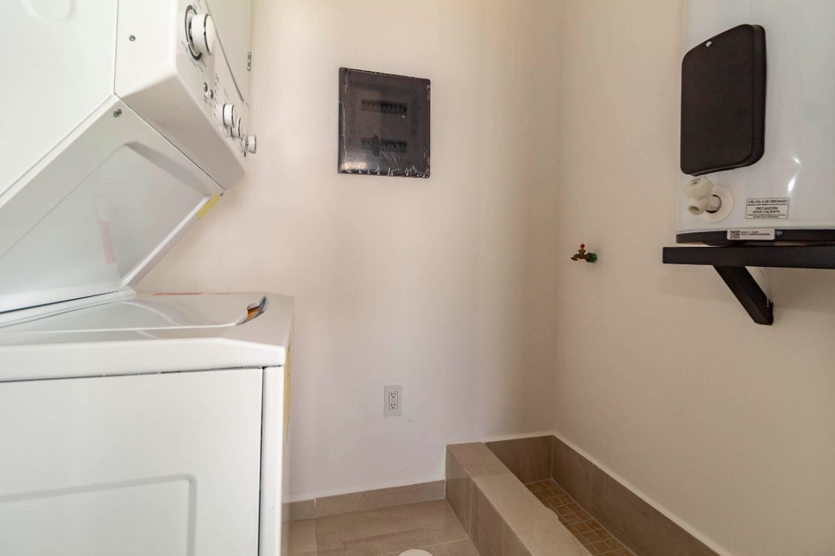 Cocina, sala con salida a terraza, comedor, cuarto de lavado, terraza, recámara principal con vestidor y baño completo con 2 lavamanos salida a terraza . 1 habitación secundaría con baño completo y closet, medio baño de visitas