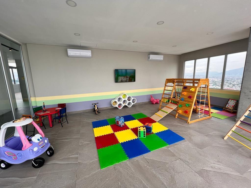 Alberca techada y cerrada, Salón de usos múltiples, Asadores, Ludoteca, 5 Salas lounge, Sport Bar, Pet Zone, Gimnasio, área de ejercicio al aire libre, 2 Terrazas con vista panorámica, seguridad 24/7.