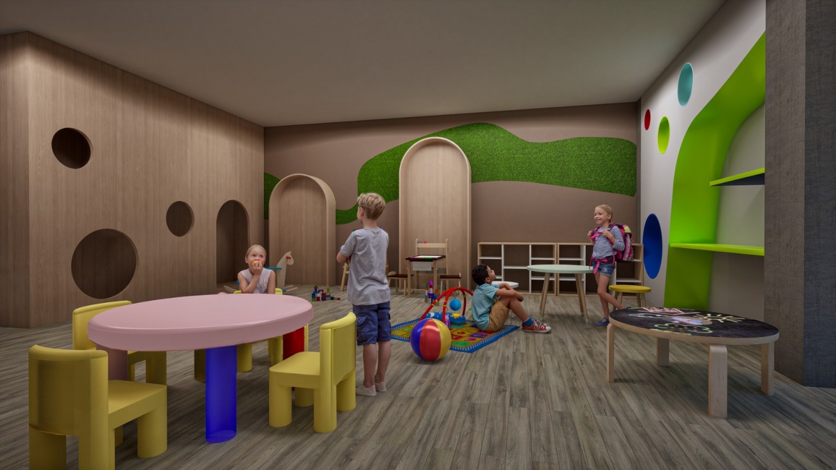 Gym, lounge bar, grill terrace, pet zone, children's playroom, playground.