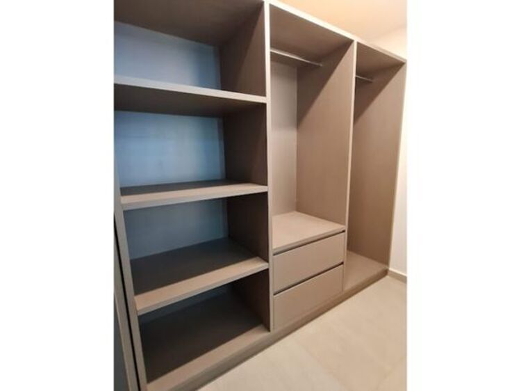 Living room with balcony, kitchen, half bathroom for guests, 2 secondary bedrooms that share a bathroom, and a master bedroom with bathroom and walk-in closet, two parking spaces.