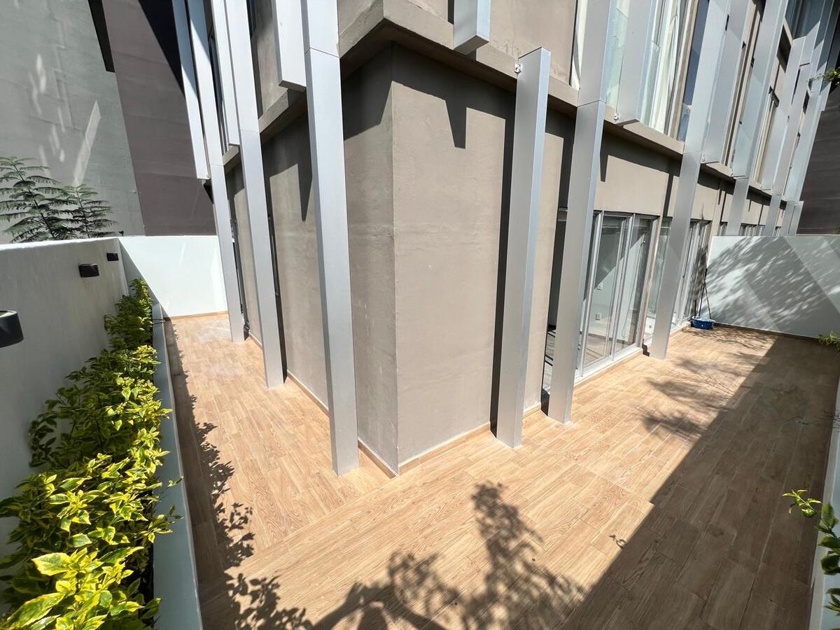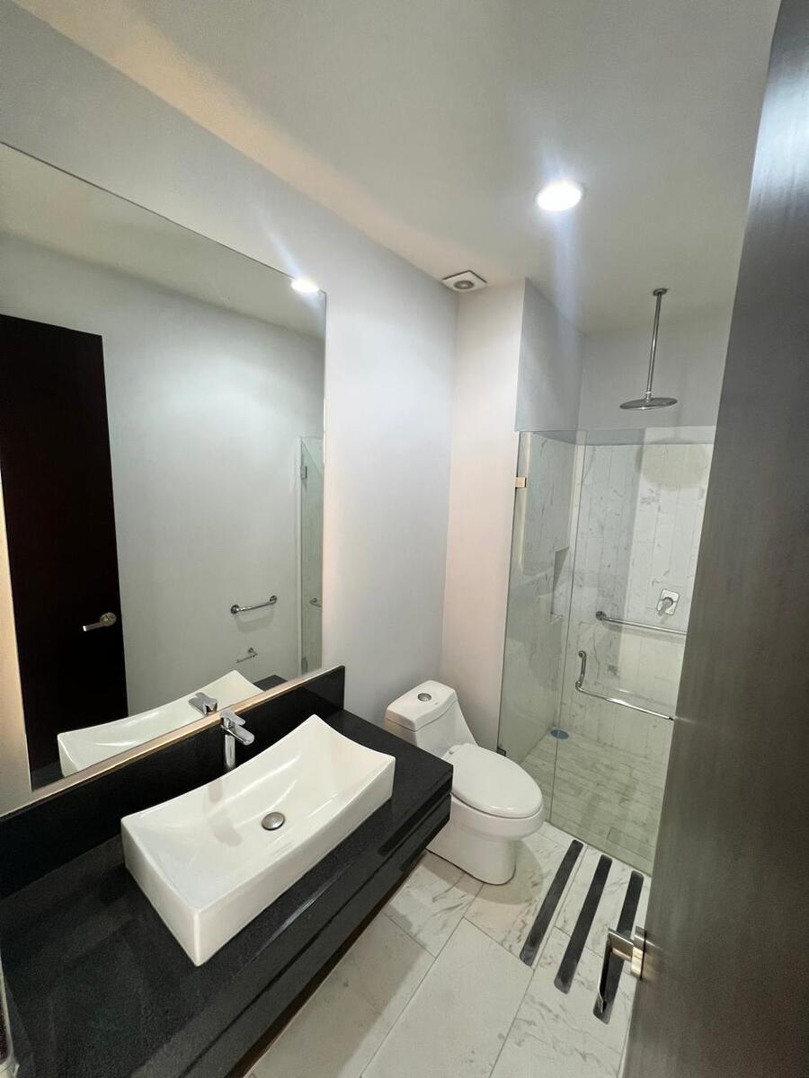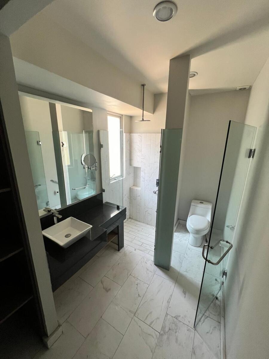 Cuenta con 2 recámaras, 2 baños completos, terraza privada, cuarto de lavado y 2 estacionamientos techados, además de espacios amplios con acabados contemporáneos en mármol y granito.