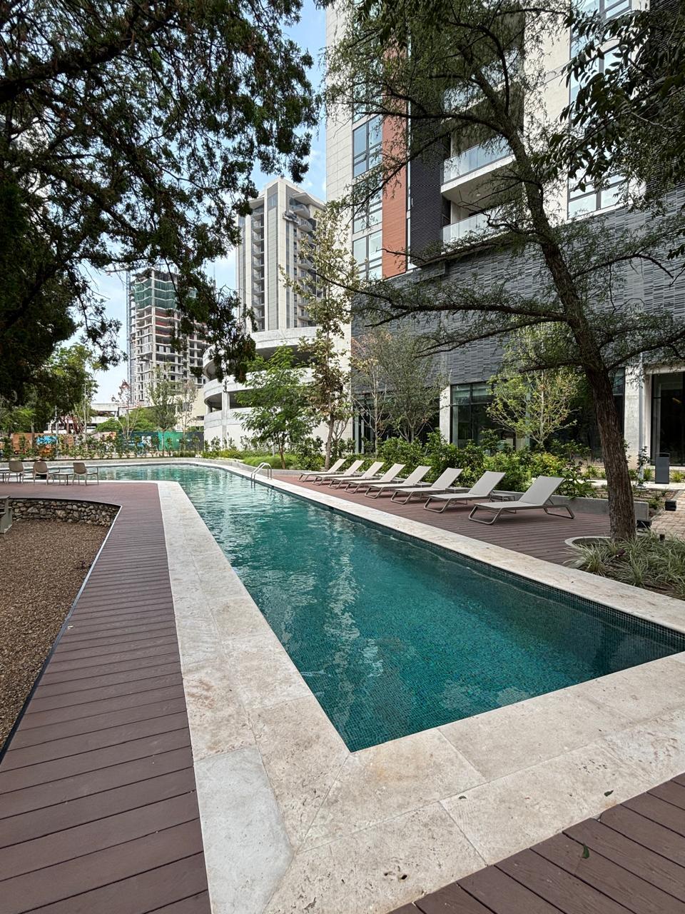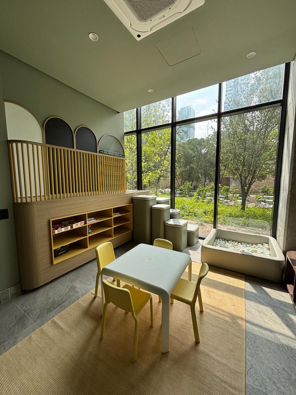 Tower with amenities such as gym, meeting room, multipurpose room, children's playroom, pool, playground, palapa, and grills.