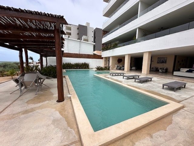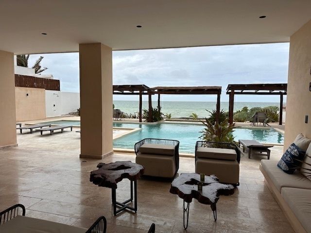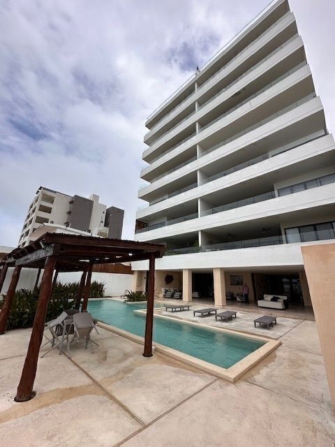 Spectacular furnished apartment located on the 5th floor, with a wonderful view of the beaches of Chicxulub Puerto, located very close to the Chicxulub pier.