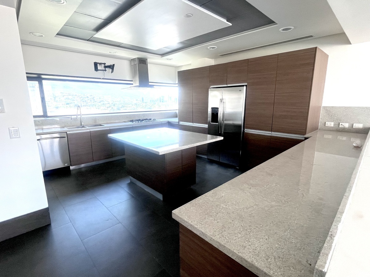 3 recámaras cada una con baño / vestidor, sala de tv, balcón en área social y recámaras, cocina equipada, cuarto de servicio, bodega, 3 estacionamientos.