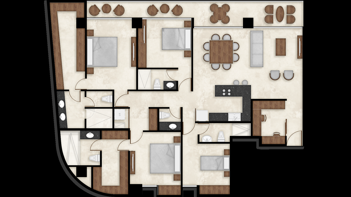 Private areas: -Gym -Track -Padel court -Yoga room -Spa -Meditation -Bar -Viewpoints -Grill area -Parks -Dry cleaner -Playroom -Gardens