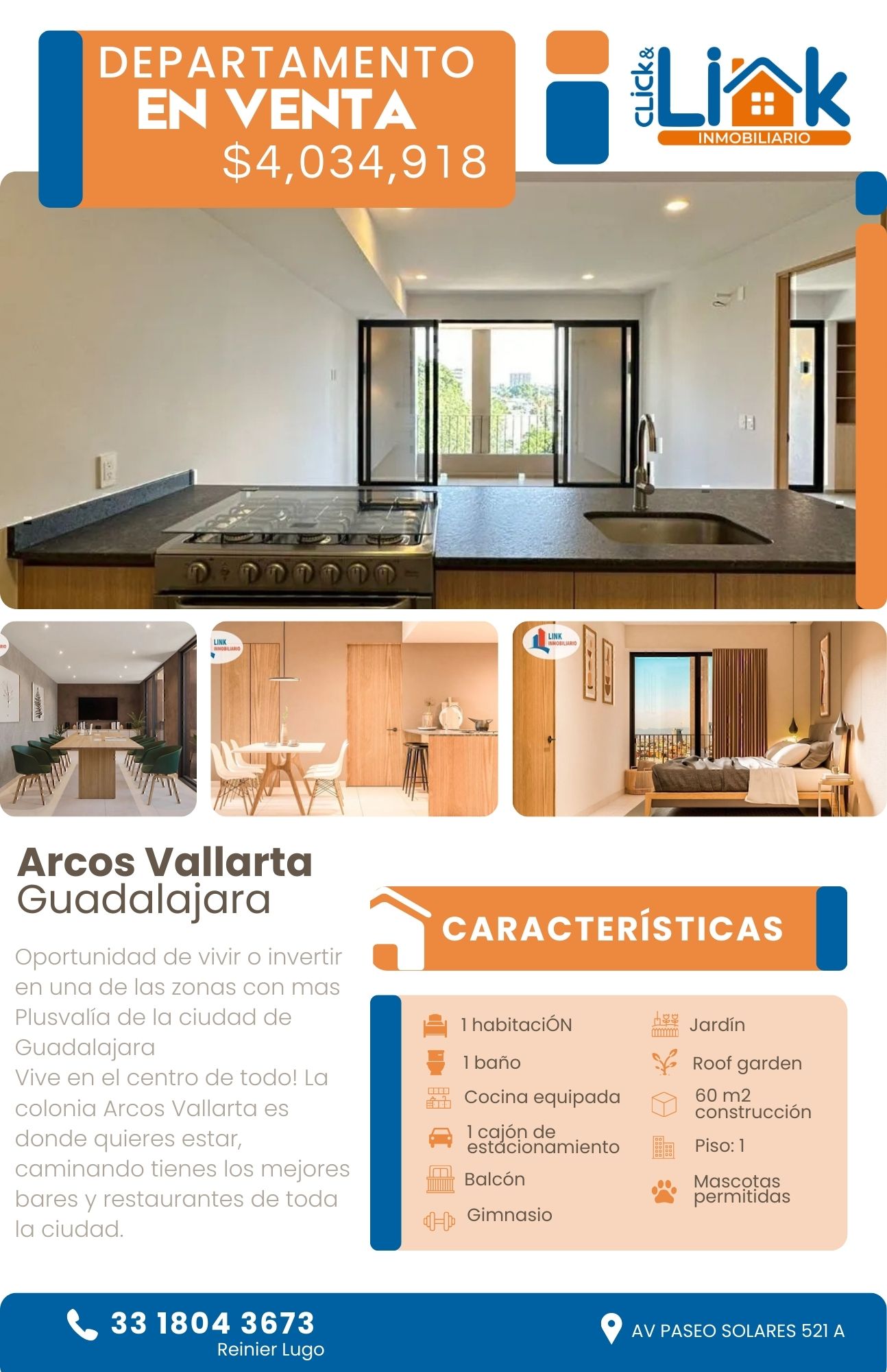 Vive en el centro de todo! La colonia Arcos Vallarta es donde quieres estar, caminando tienes los mejores bares y restaurantes de toda la ciudad.