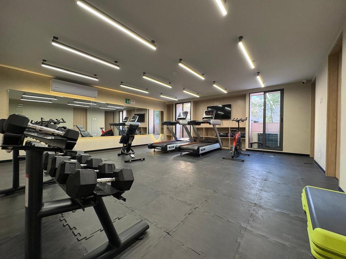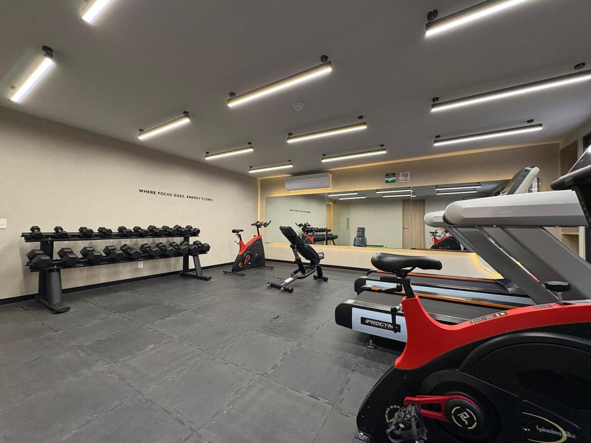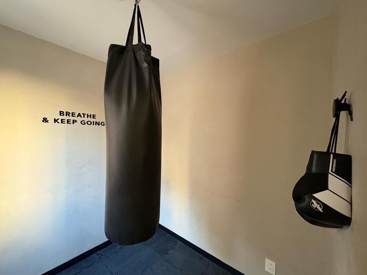 -Gimnasio con área de pesas, equipo para hacer cardio y área de box