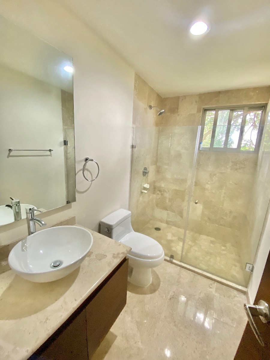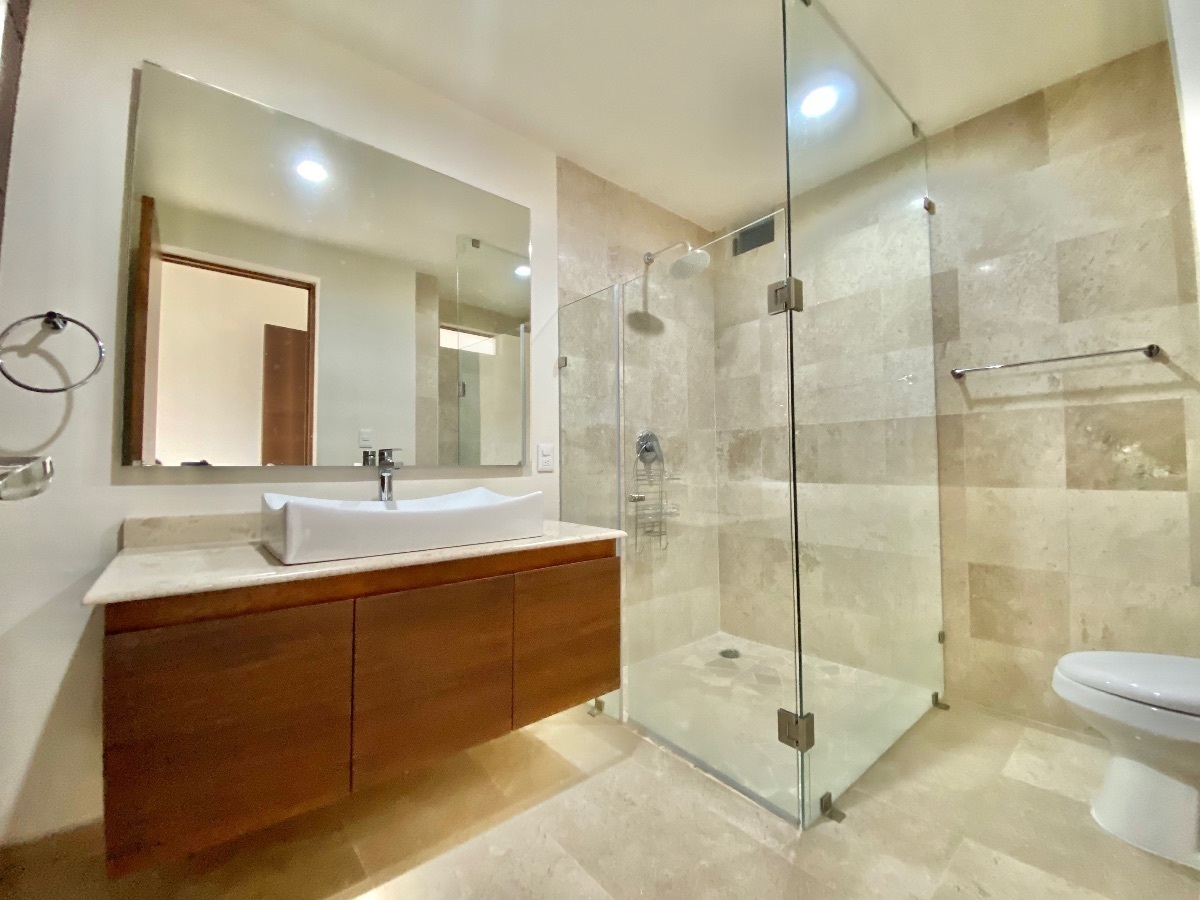 Finishes: Marble format 30 x free lengths, aluminum frames in champagne color, Bathrooms lined and tempered glass enclosures, Carpentry in noble wood and parota veneer, beautiful wide-format entrance door.