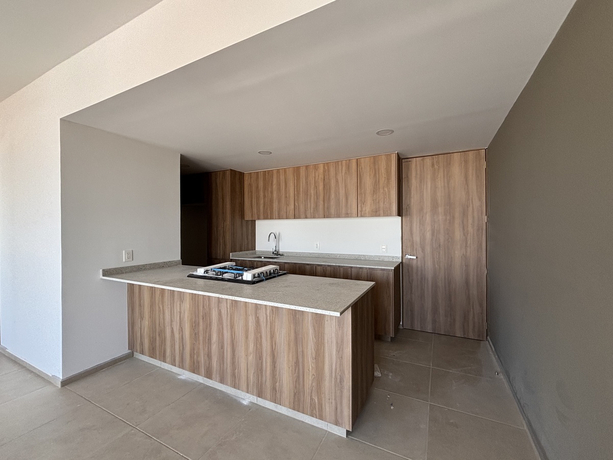 Cocina integral con amplios cajones y barra de granito que le da un toque especial al departamento.