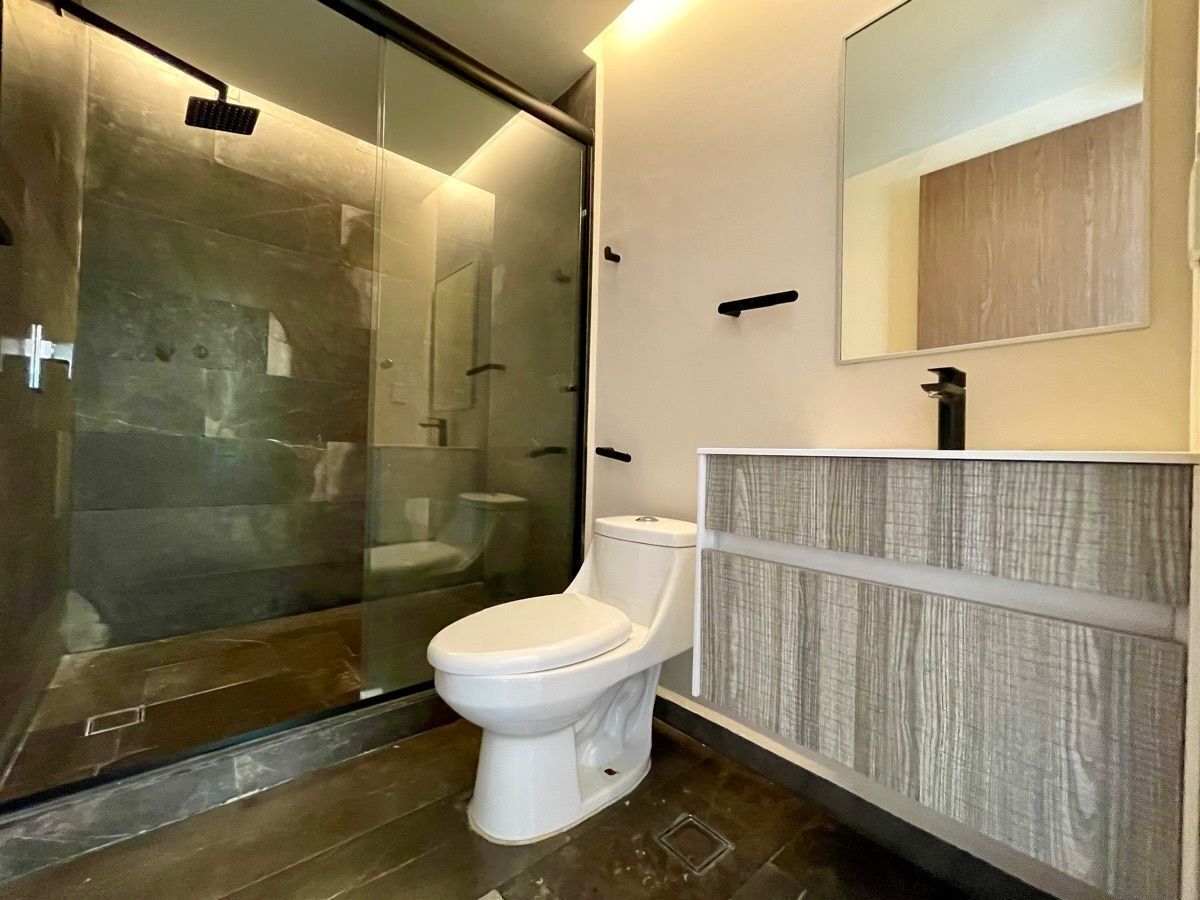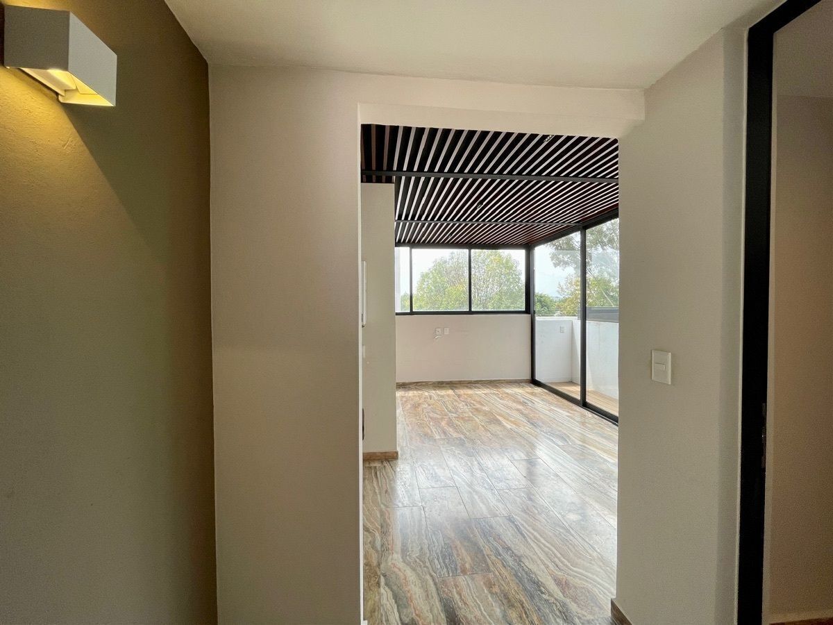 Hermoso departamento en renta con preciosas vistas verdes y de estilo contemporáneo, de 92.38m2 habitables más 20m2 de terrazas, de una recámara, un baño y un estacionamiento.
