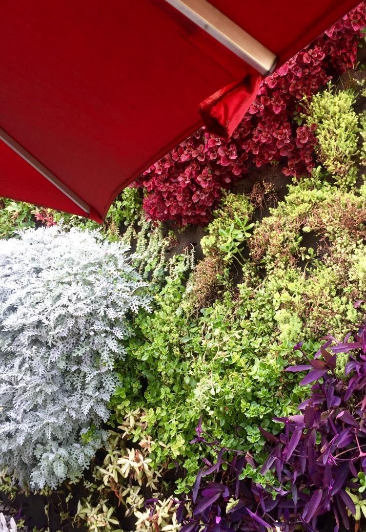 • Muros verdes interiores y exteriores con sistema de riego automático