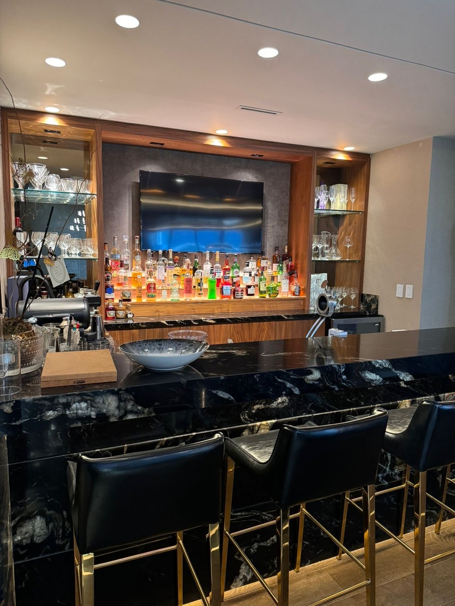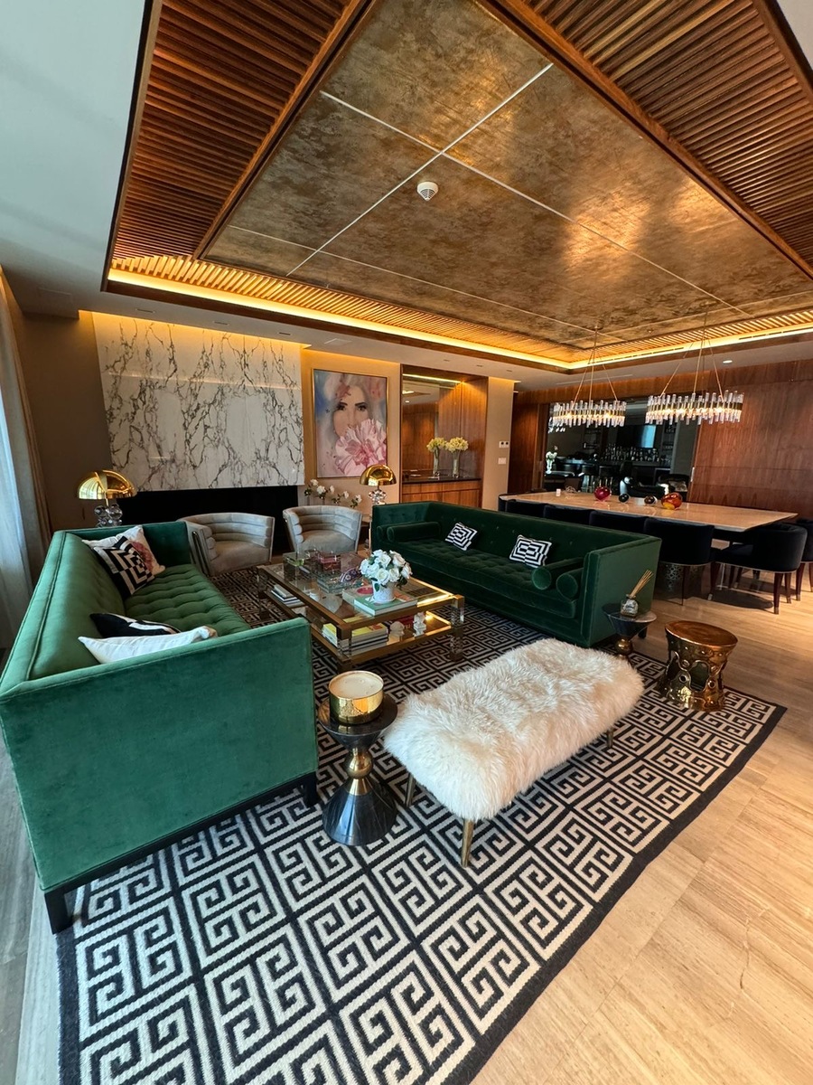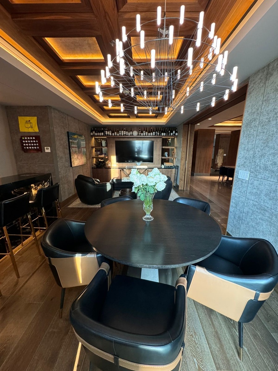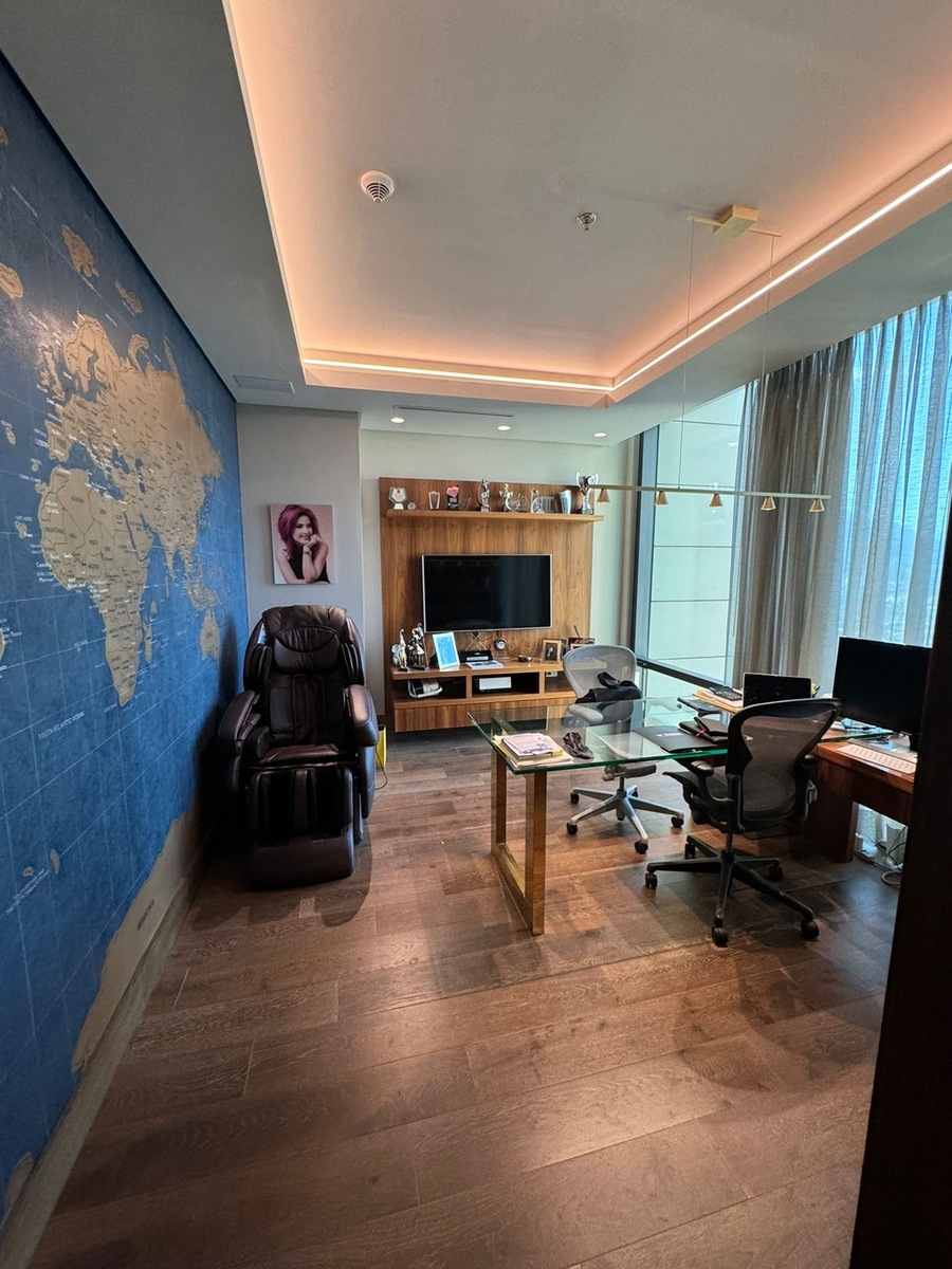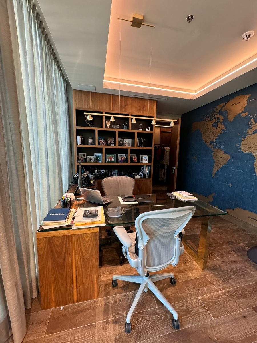 Cocina equipada, sala, comedor, bar, oficina, lavanderia y cuarto de servicio.