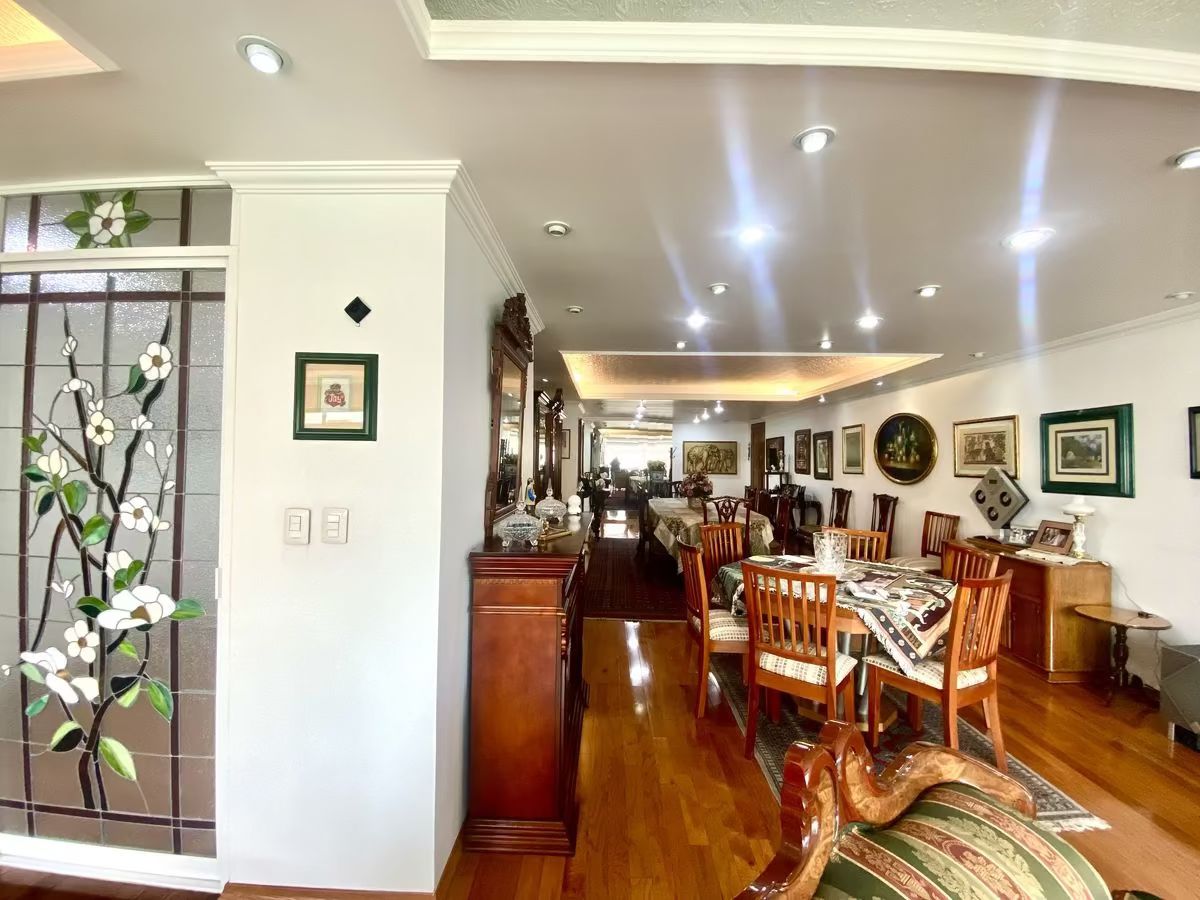 Este espectacular departamento cuenta con 300 m² distribuidos en una amplia área abierta que integra la sala, comedor y family room, lo que ofrece un ambiente espacioso y acogedor. Su diseño incluye detalles únicos como vitrales y pisos de madera, brindando un toque de elegancia y calidez en todos los espacios.en la remodelación se le cambio la instalaron eléctrica e hidráulica .
