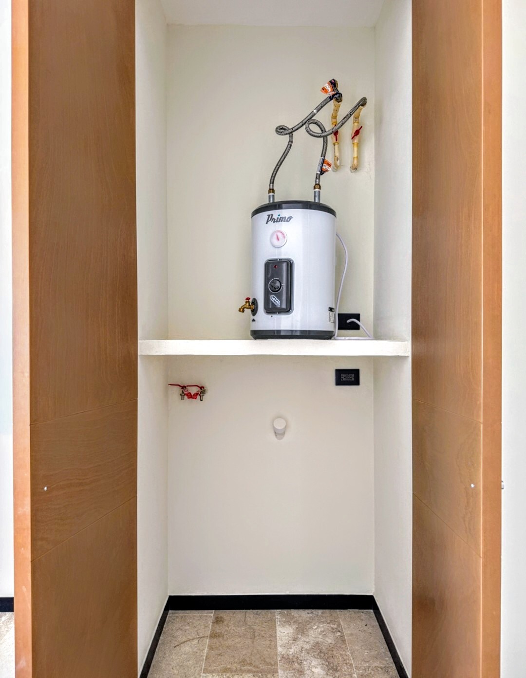 -Mesetas de granito en cocina y barra desayunadora, pisos de marmol, yeso en muros, muros divisiorios de block.