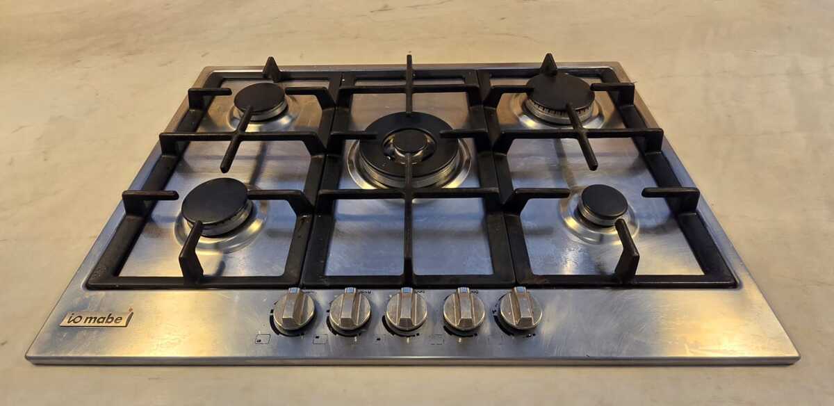 Cocina integral con barra desayunador y estufa de 5 quemadores