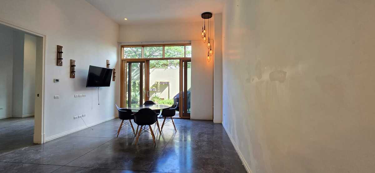 Todo el departamento con altura y media interior (4m de piso a techo) y aire acondicionado en todos los espacios.