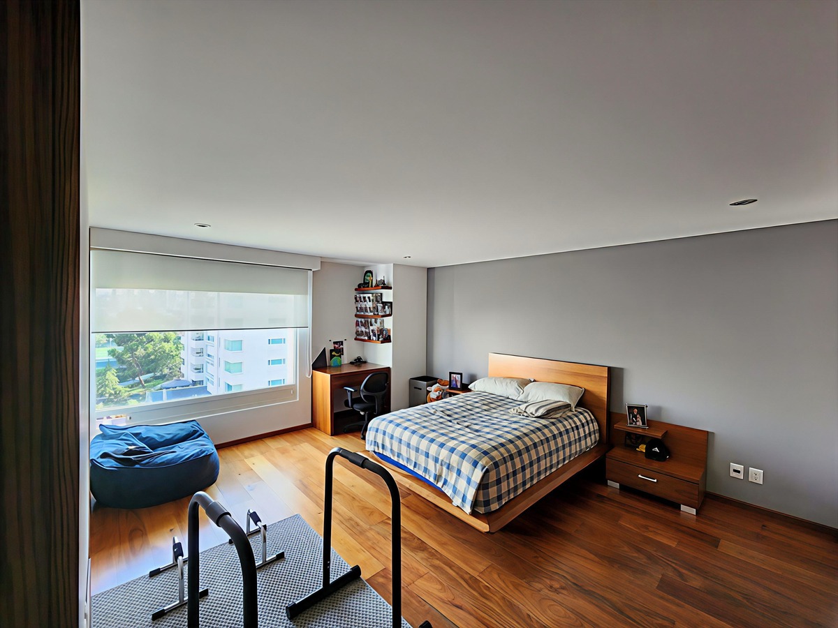 SUMÉRGETE EN EL LUJO Y LA TRANQUILIDAD DE ESTA RESIDENCIAL EN UNA DE LAS ZONAS MÁS EXCLUSIVAS DE INTERLOMAS, DENTRO DEL PRESTIGIOSO LOMAS COUNTRY CLUB. RODEADA DE IMPONENTES BOSQUES, LAGOS Y JARDINES, ESTA PROPIEDAD TE OFRECE UNA VISTA PANORÁMICA INIGUALABLE Y UN ESTILO DE VIDA SIN IGUAL. EN PERFECTAS CONDICIONES, LISTO PARA HABITAR, CUENTA ESTANCIA MUY ILUMINADA CON ACABADOS DE MARMOL EN PISO, MURO DE CANTERA, TERRAZA AMPLIA CON DECK, CUENTA CON UNA PUERTA CORRIDIZA QUE DIVIDE EL AREA PRIVADA, DONDE SE ENCUENTRAN 3 AMPLIAS RECÁMARAS, LA PRINCIPAL CON VESTIDOR, 3.5 BAÑOS, FAMILY ROOM, TODAS LAS HABITACIONES Y FAMILY CON PISO DE MADERA DE INGENIERIA, COCINA INTEGRAL REMODELADA CON CUBIERTA DE GRANITO, CUARTO DE SERVICIO CON BAÑO Y CUARTO DE LAVADO CON SALIDA DE SERVICIOS. EL DEPARTAMENTO CUENTA CON 4 CAJONES DE ESTACIONAMIENTO, TODOS JUNTOS EN EL MISMO NIVEL, ASI COMO, BODEGA.