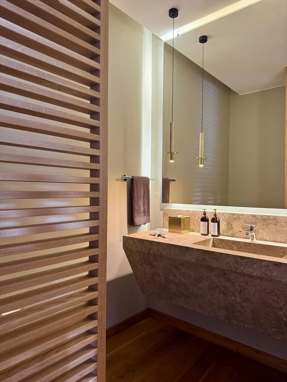 Exclusive interior design, built-in walnut wood furniture, bathrooms with marble, German carpentry, double-glazed windows, engineered wood throughout the apartment.