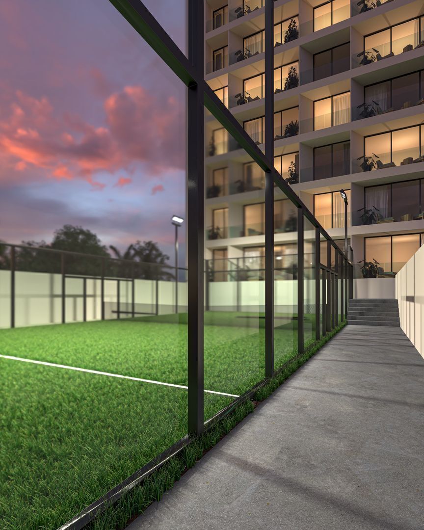 Áreas privadas: -Gimnasio -Track -Cancha de padel -Salón de yoga -Spa -Meditación -Bar -Miradores -Zona de parillas -Parques -Tintorería -Ludoteca -Jardines
