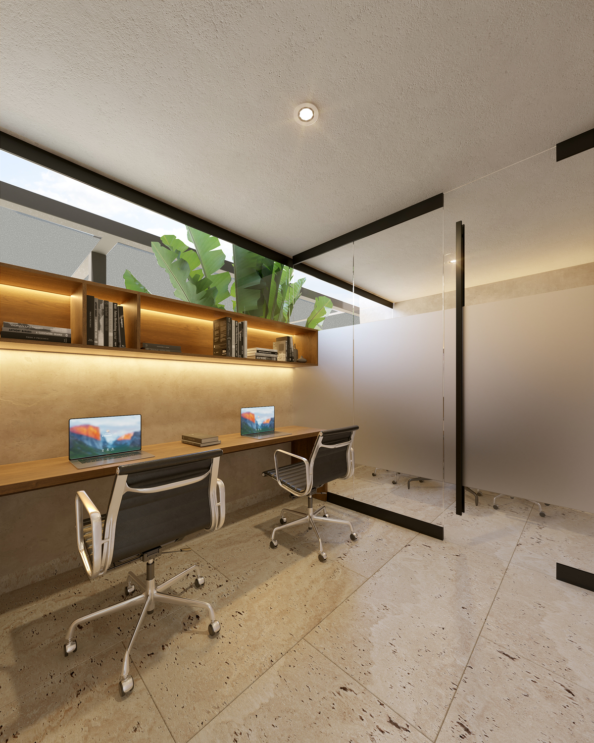EME 21 complex of 21 apartments distributed over 4 levels, with three different models of 1 and 2 bedrooms. Located in the Montes de Amé neighborhood, one of the areas with the highest appreciation within the Mérida peripheral ring.