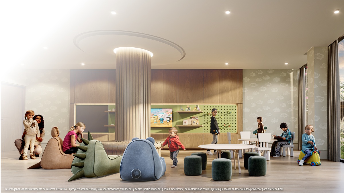 This development consists of 4 towers of apartments carefully distributed within a master plan covering more than 1.4 hectares of recreational areas, designed to promote coexistence, security, and well-being. Enjoy an active lifestyle with a fitness track, multi-sports courts, relaxation and meditation areas, a dog park, a skate park, skating areas, children's playgrounds, and an outdoor amphitheater. 🌳⚽🎭
