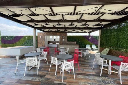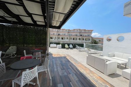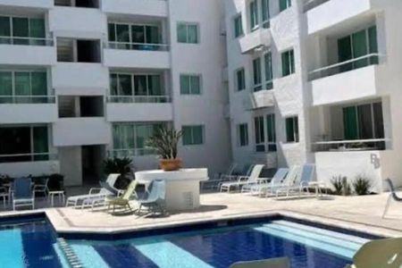El condominio tiene amenidades como terraza, alberca, espejo de agua.