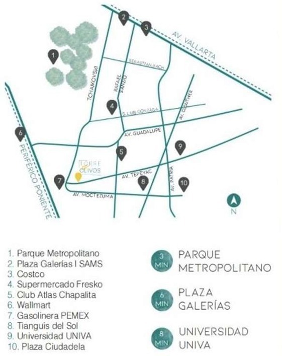 Excellent location! Close to Periférico Poniente and Avenida Vallarta, with excellent views and luxury finishes. Torre Olivos is within your reach.