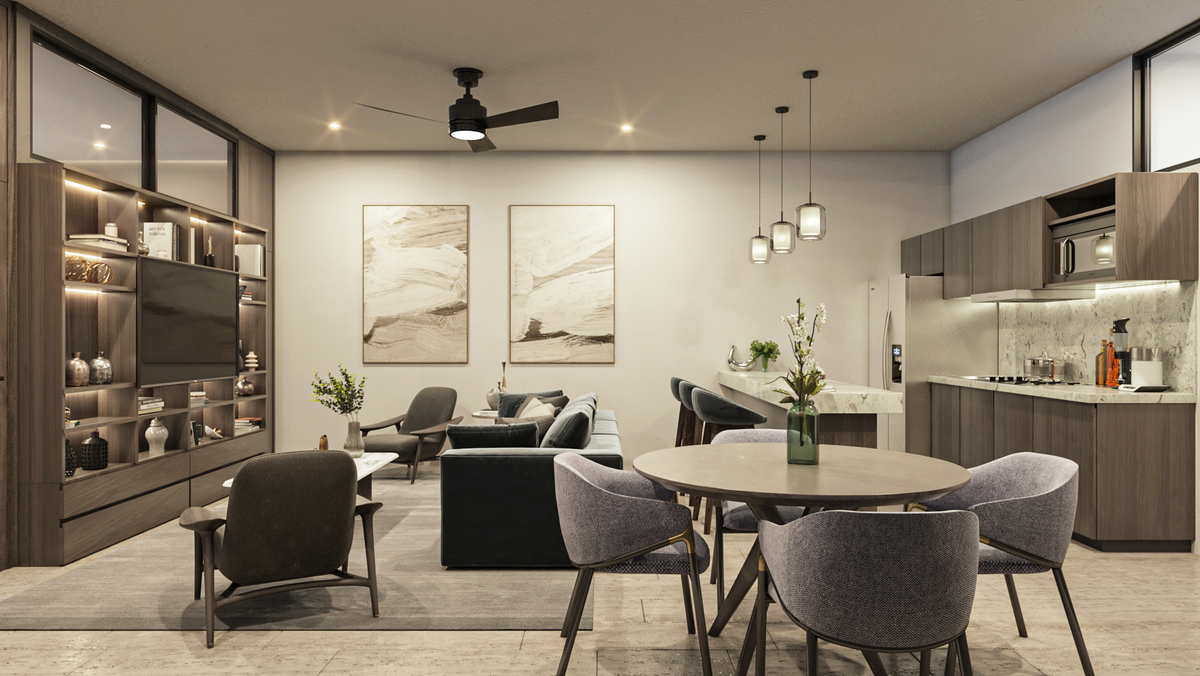Exclusive complex of 20 apartments with luxury finishes, located in one of the most prestigious areas north of Mérida, in the San Ramón Norte neighborhood. Its strategic location allows for immediate connection to universities, hospitals, and shopping centers such as City Center, La Isla, and Gran Plaza, in addition to easy access to the ring road and the main points of the city.