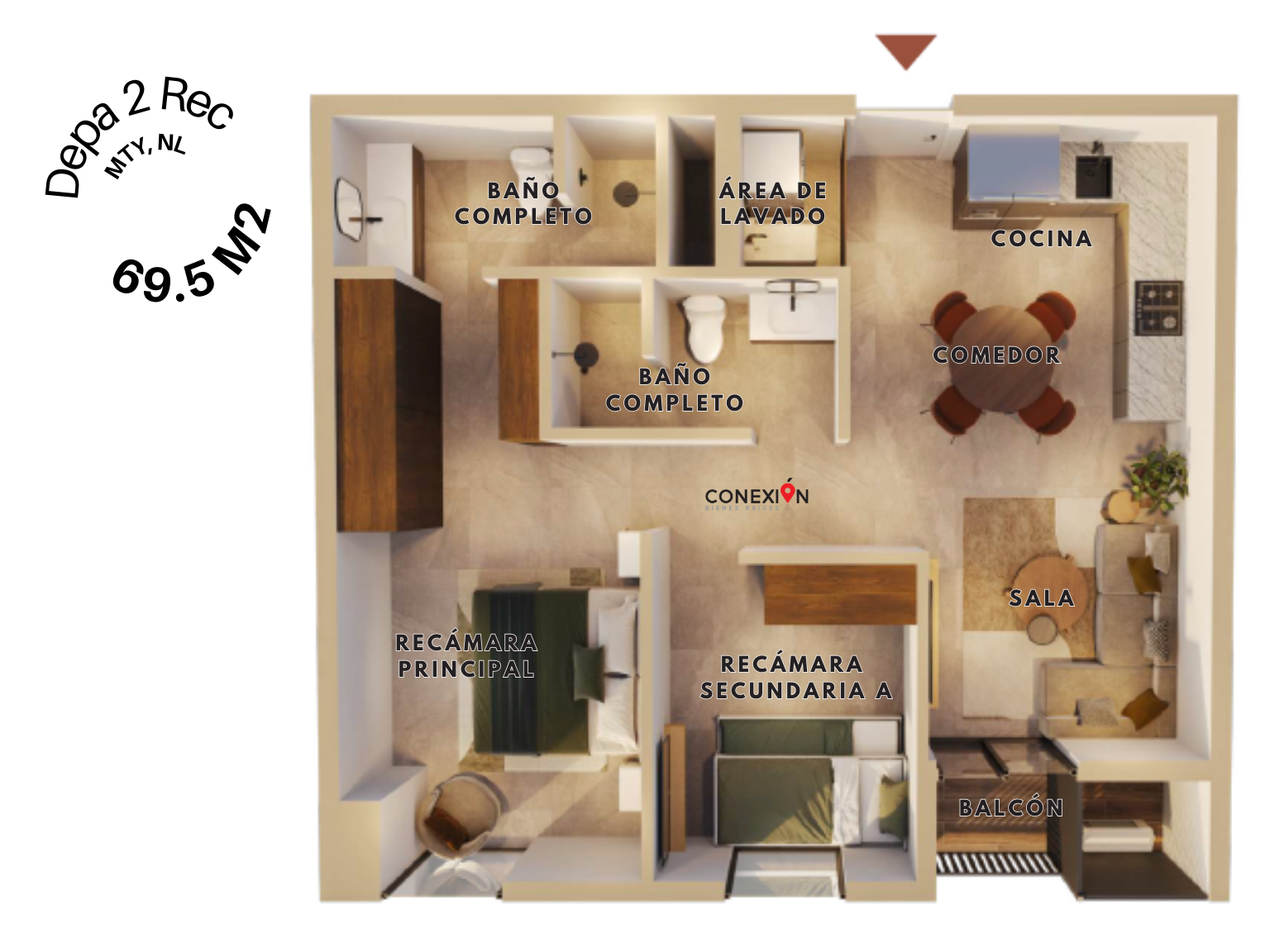 Departamentos funcionales y bien diseñados de 2 y 3 recámaras; con superficies desde 69m2 hasta 108m2, todos con balcón privado.