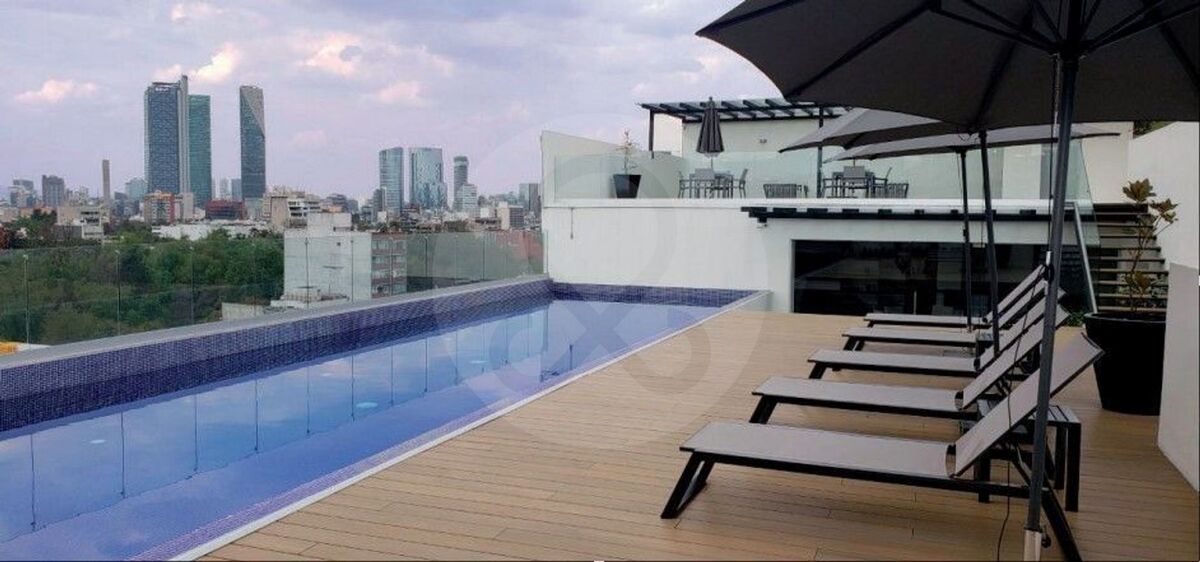 Carril de nado, Camastros, Gym equipado, Sky Lounge para tus eventos o reuniones, patio central ajardinado.