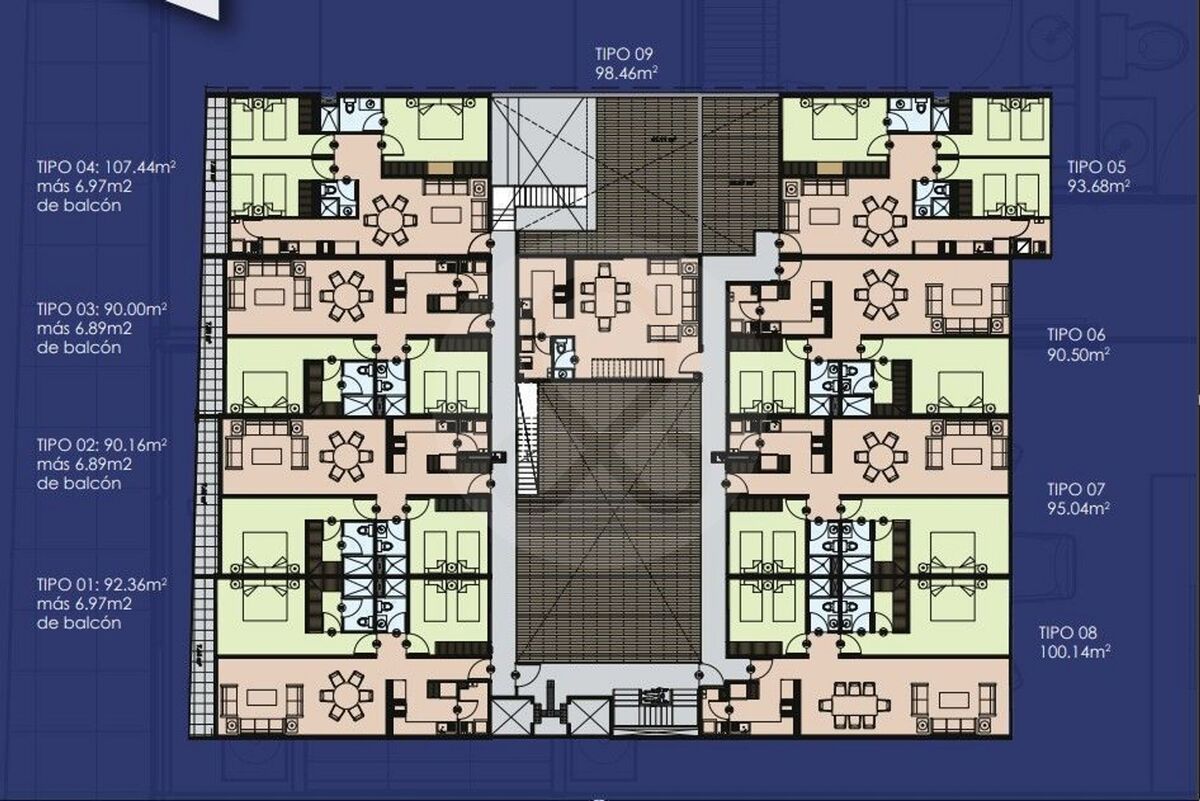 Van de los 92.17m2 hasta los 114.41 m2, cajones de estacionamiento independientes y bodegas, dos elevadores y vigilancia las 24 horas del día para tu