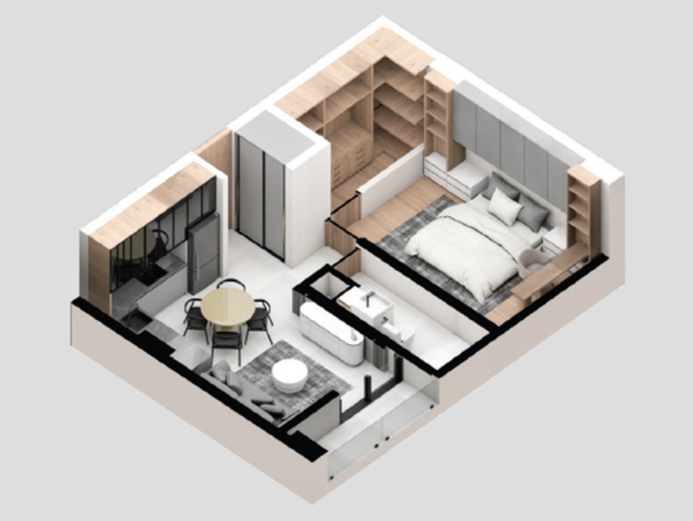 1 Bedroom 1 Bathroom Kitchen Living and Dining Room Laundry Balcony