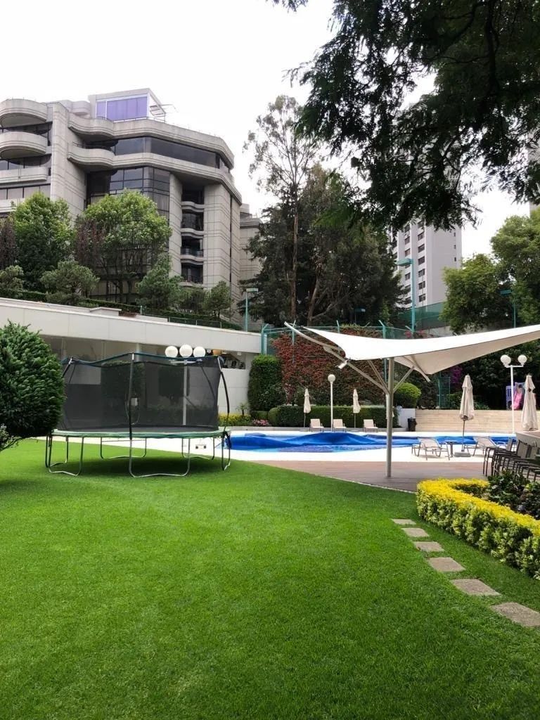 La tercer recámara tiene vestidor, baño completo y vista verde. El departamento tiene diseño de luz muy lindo.