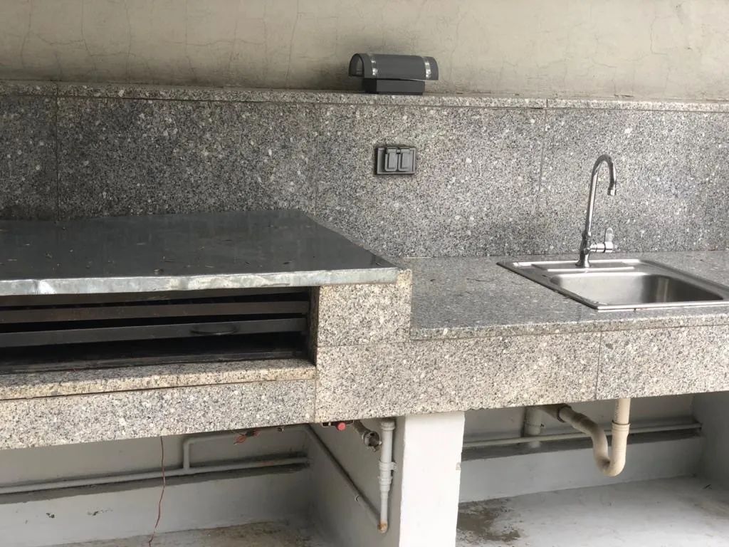 Área de servicio con mueble para cosas de limpieza, 2 lavabos, y recámara de servicio que cuenta con clóset y tienen baño completo. No hay ventilación natural en la recámara en el cuarto que una ventana