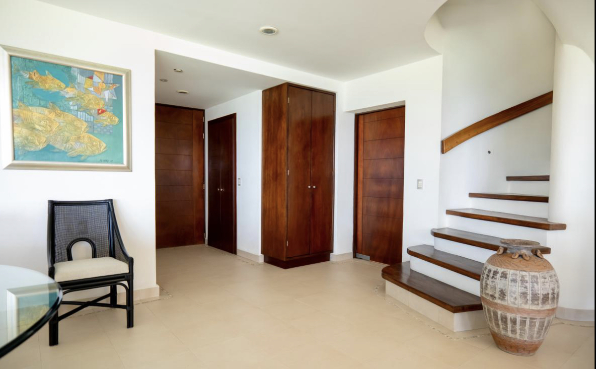 El interior consta de una sala de estar, comedor, cocina integral equipada, 4 recámaras con vestidor y baño completo (una con closet)