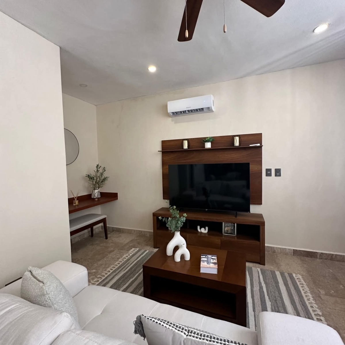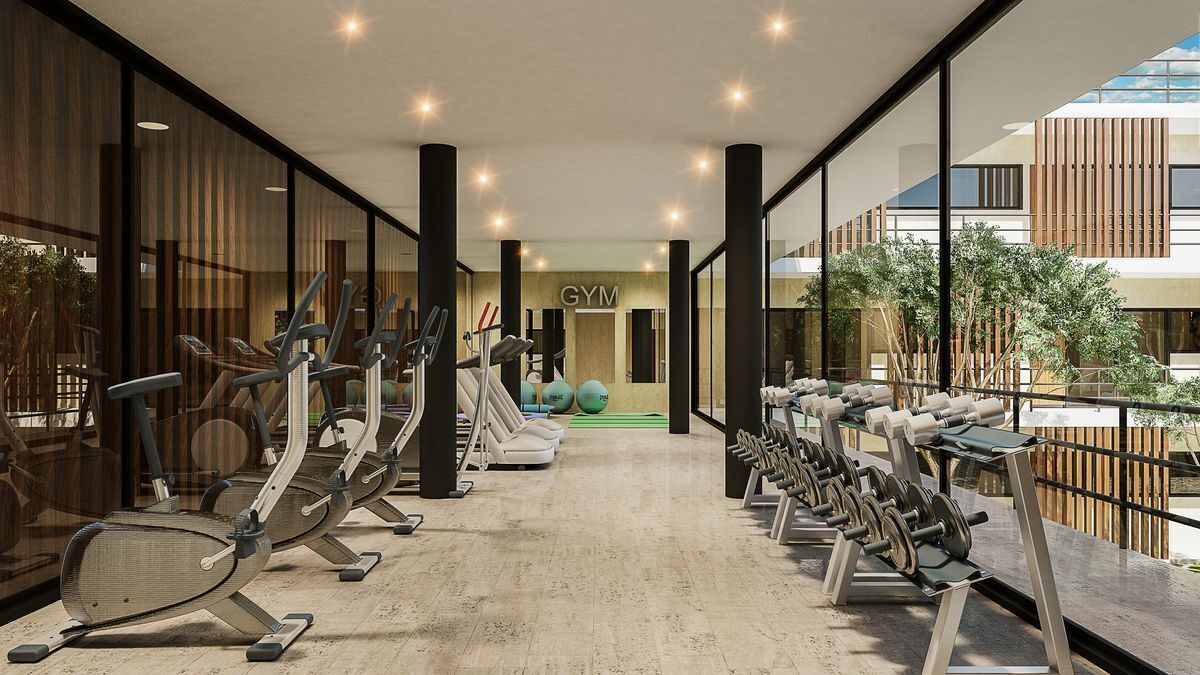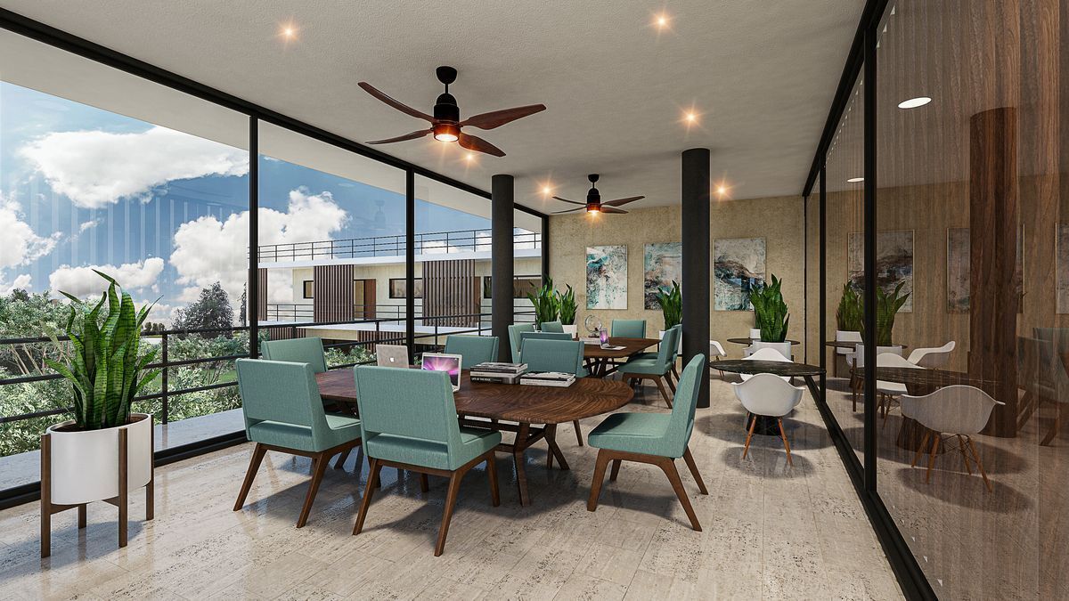 Amenidades: fraccionamiento privado con seguridad 24/7, estacionamiento, área de bar, solarium con camastros, gym, juegos de ping pong y futbolitos, baños, piscina, áreas de yoga, pet friendly y andadores.